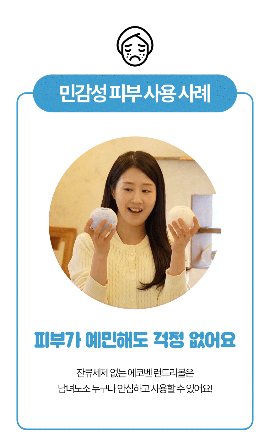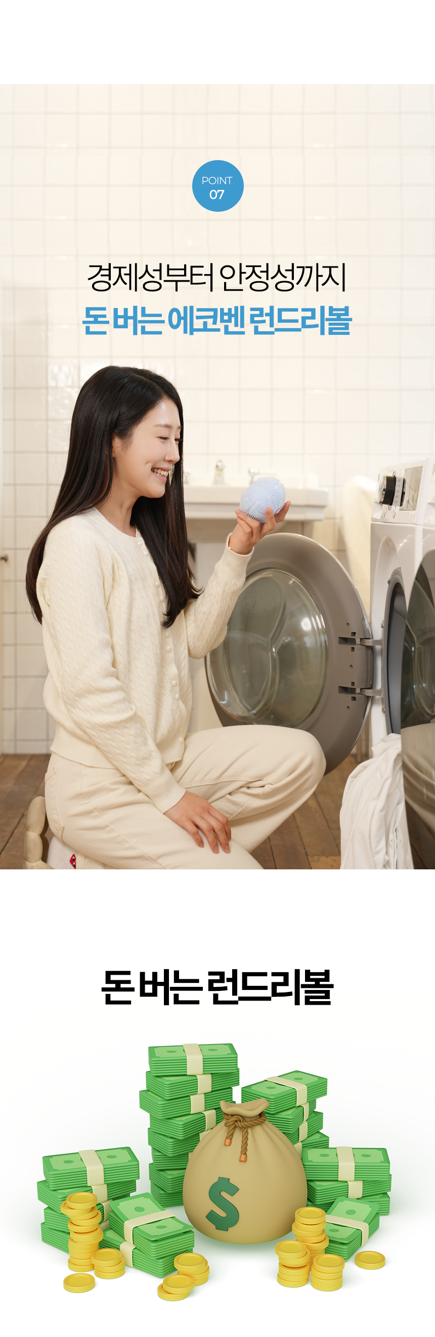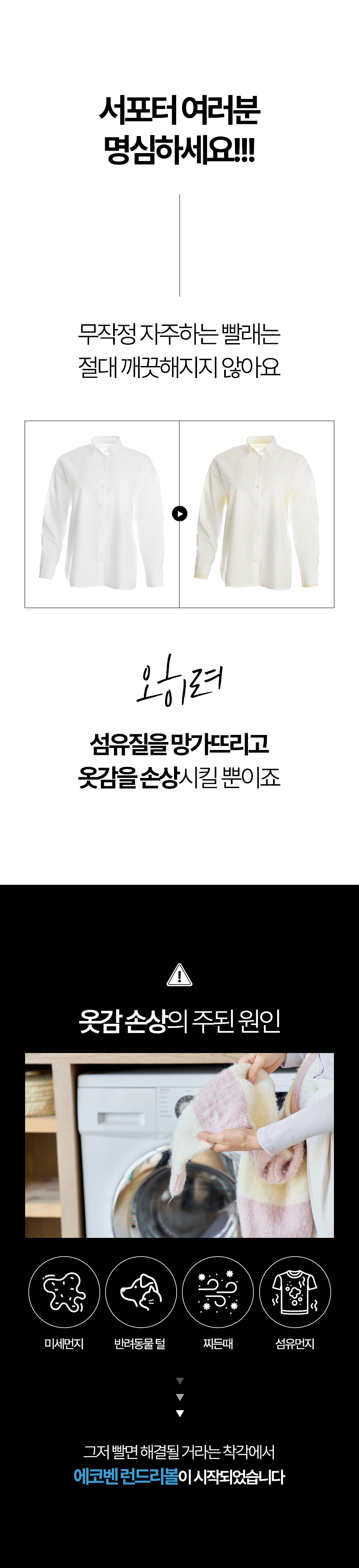 서포터 여러분에게 선보이는 에코벤 런드리볼은 세탁만으로 해결될 수 없는 수많은 고민을 해결하기 위해 다년간 개발을 통해 탄생한 제품입니다.