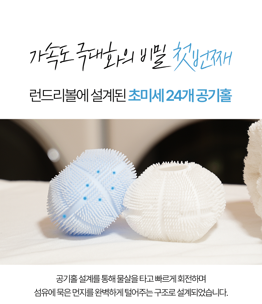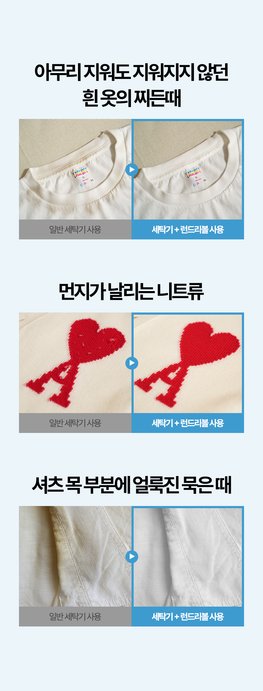세제는 줄이고, 더 깨끗한 세탁을 할 수 있는 방법을 고민한 끝에 탄생한 런드리볼은 우리 가족은 물론 지구에게도, 그리고 서포터 여러분에게도 가장 깨끗한 세탁을 위한 올바른 방법을 제시합니다.