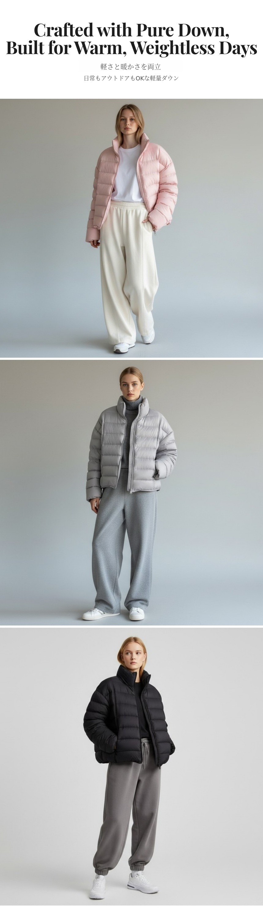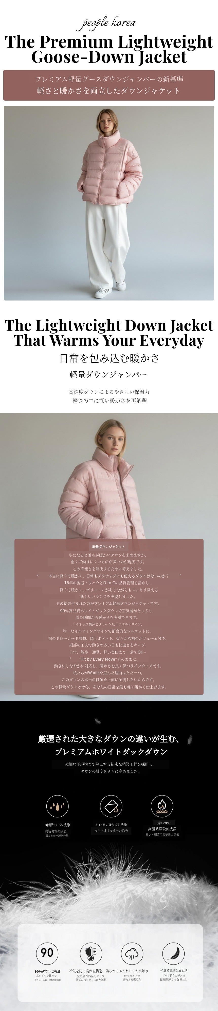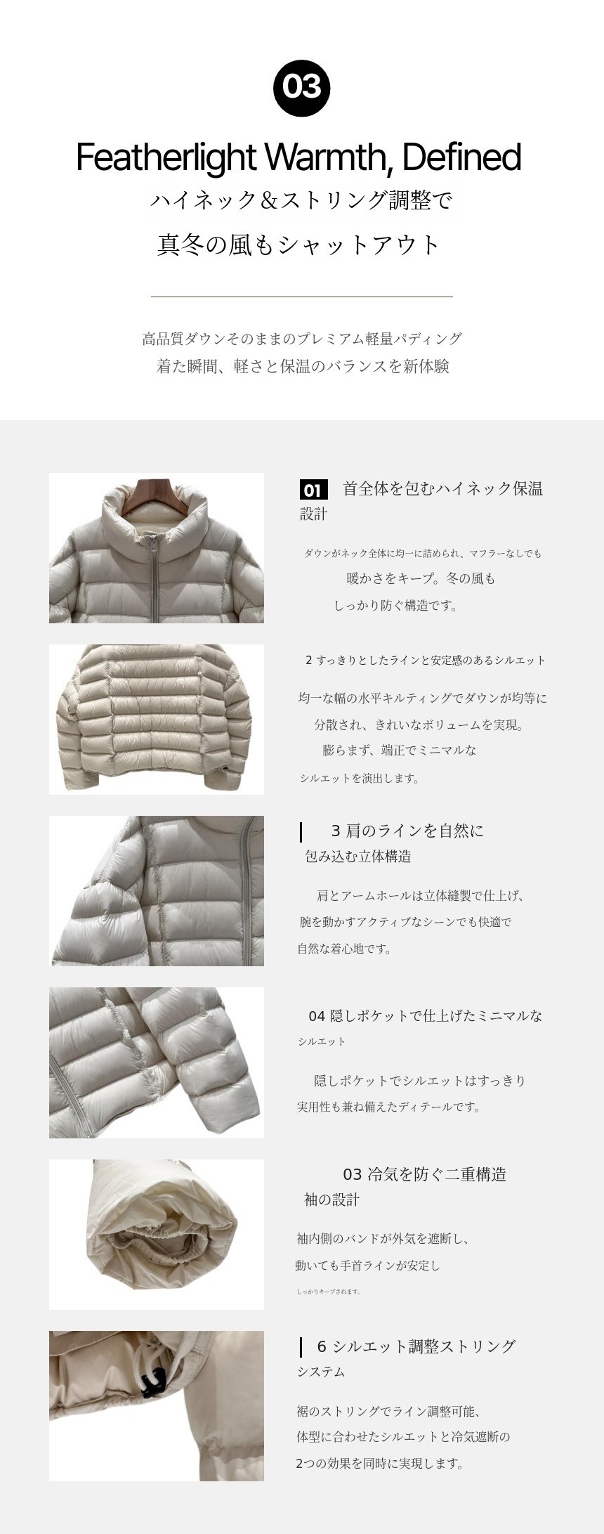 1. 🧥 超軽量ホワイトダックダウンジャケット - 軽くて暖かい高純度ダウン使用です 2. ❄️ 保温性と動きやすさの両立 - 3Dパターンと均一キルティングです 3. 🎁 限定色と実用的なディテール - 隠しポケットと調節可能なストリングです