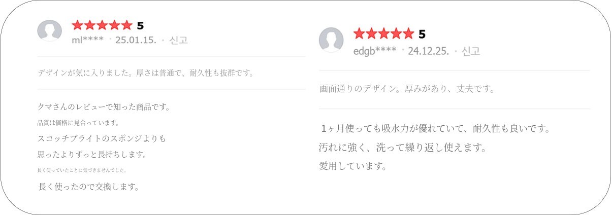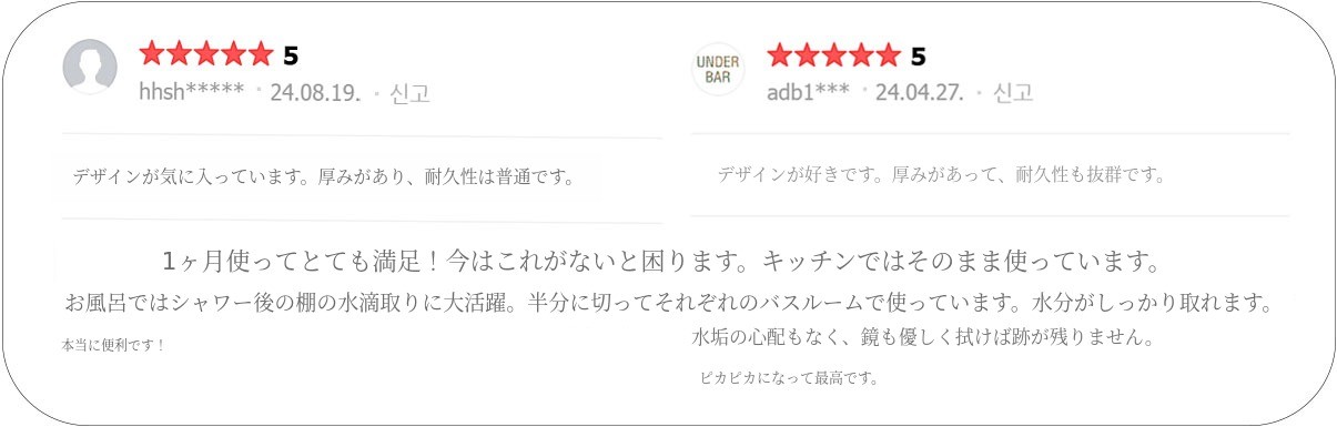 スポンジで乾式バスルームの水気を管理し、シンク周りの水気を拭いていたら掃除の頻度も増え、いつもきれいに管理できてとても良かったのですが、スポンジがなくなってしまい、適当な製品がなくて少し不便に感じました。