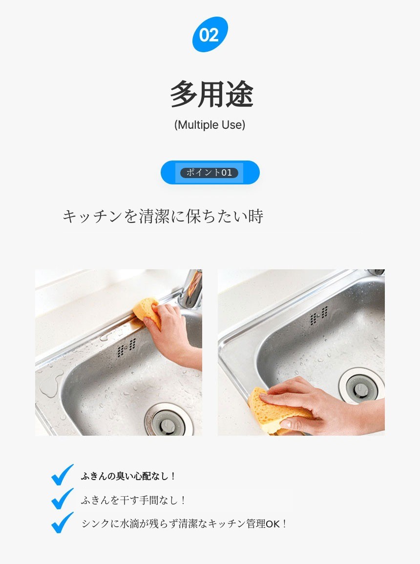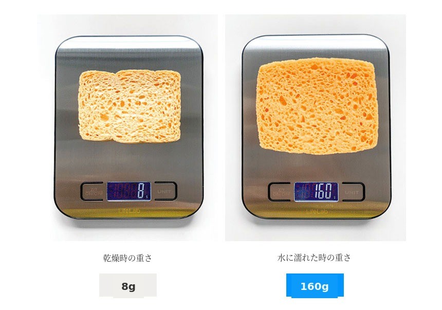 20倍吸水スポンジでキッチンやバスルームで使用時