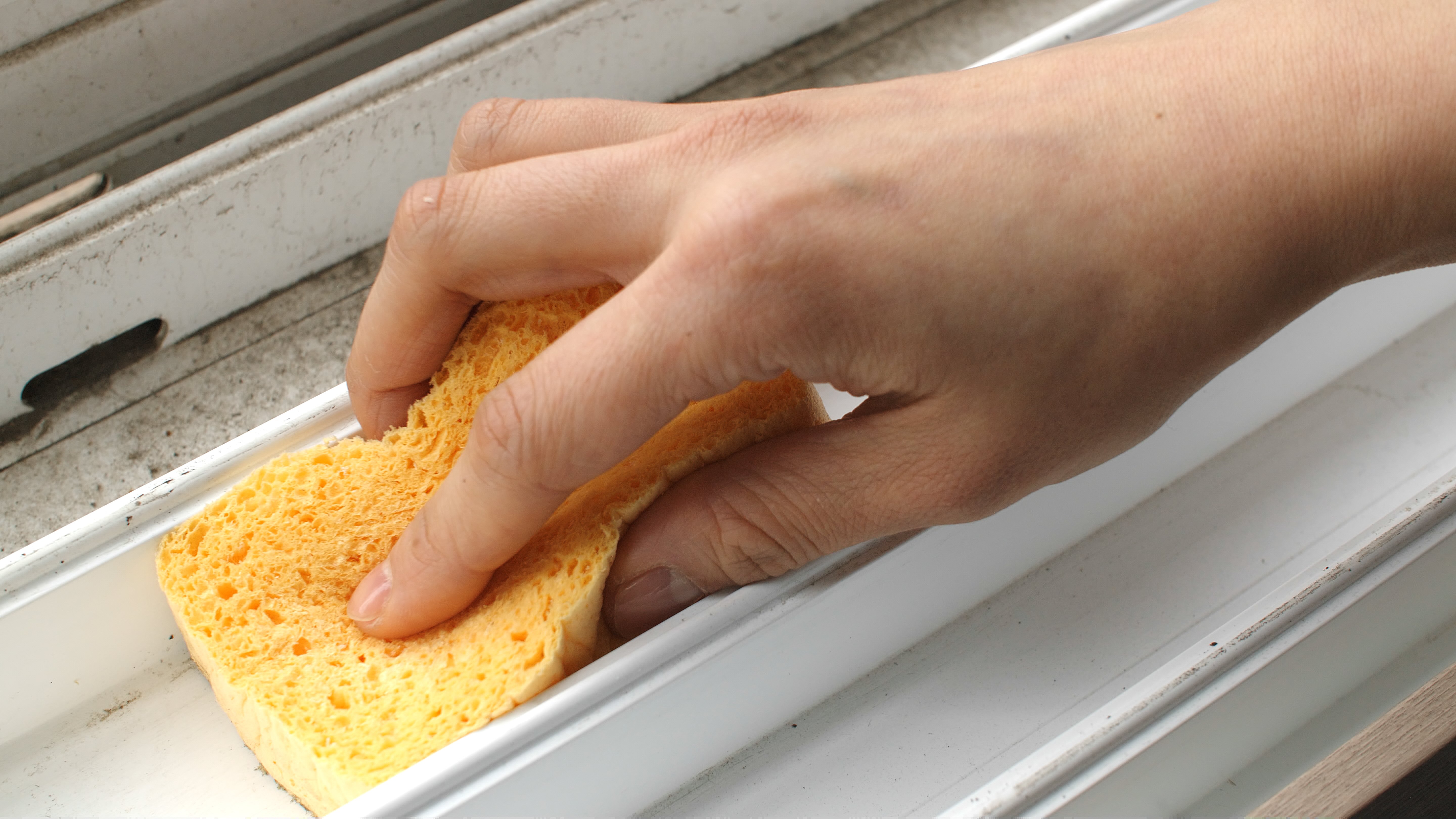 古いスポンジは最後に 窓枠の掃除 までやれば完了!