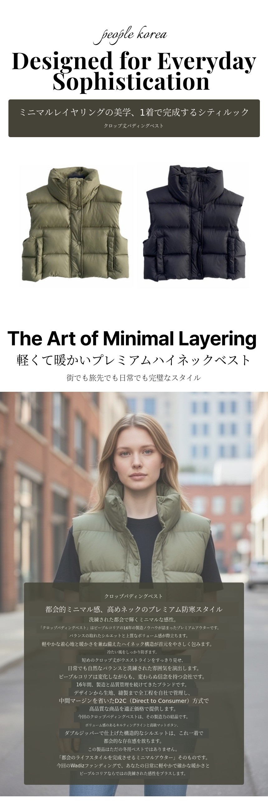 1. 🧥 スタイリッシュなクロップドベスト - ウエストラインを強調するクロップド丈です 2. 🔥 軽量で暖かい冬用アウター - ウェロン充填材で保温性と快適さを実現します 3. 🎁 ワディズ限定プレミアムベスト - 16年の製造ノウハウを活かした高品質製品です