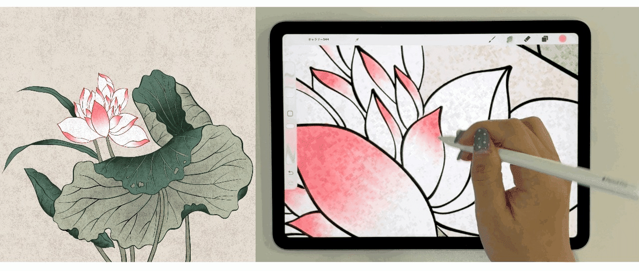 iPadで東洋画を描きながら