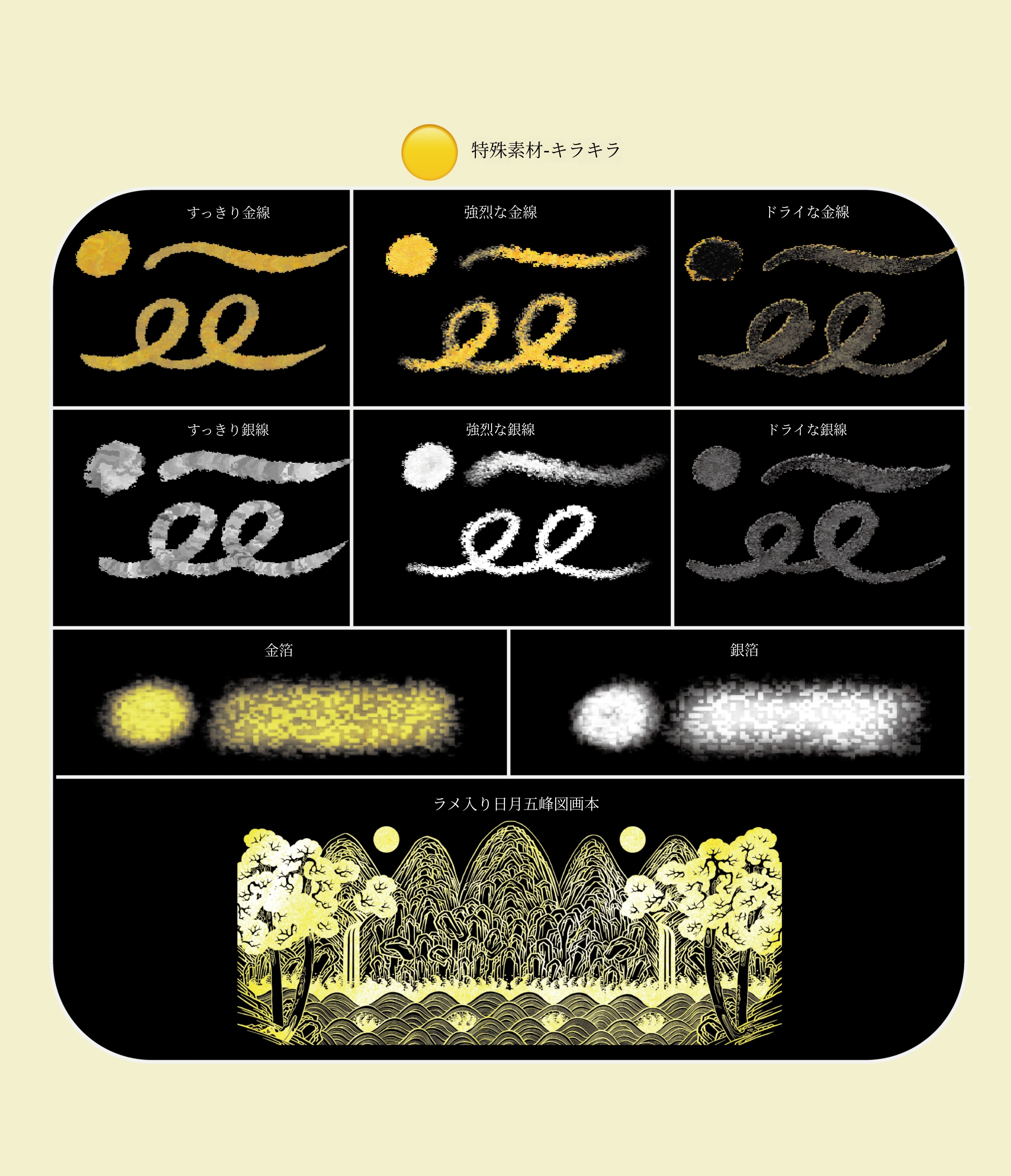 金・銀粉、顔料、ラメなど