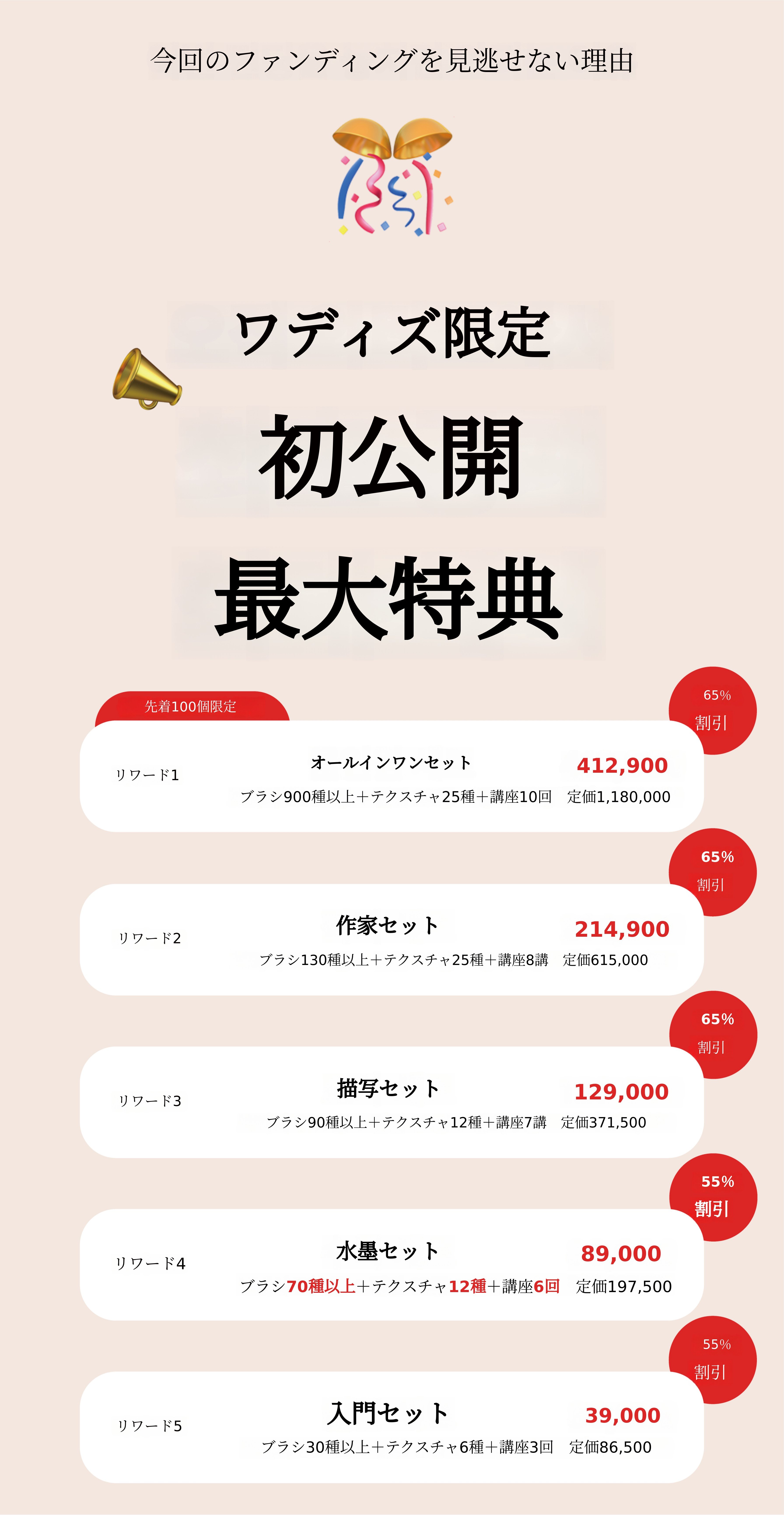 初のクラウドファンディング記念最大65%割引