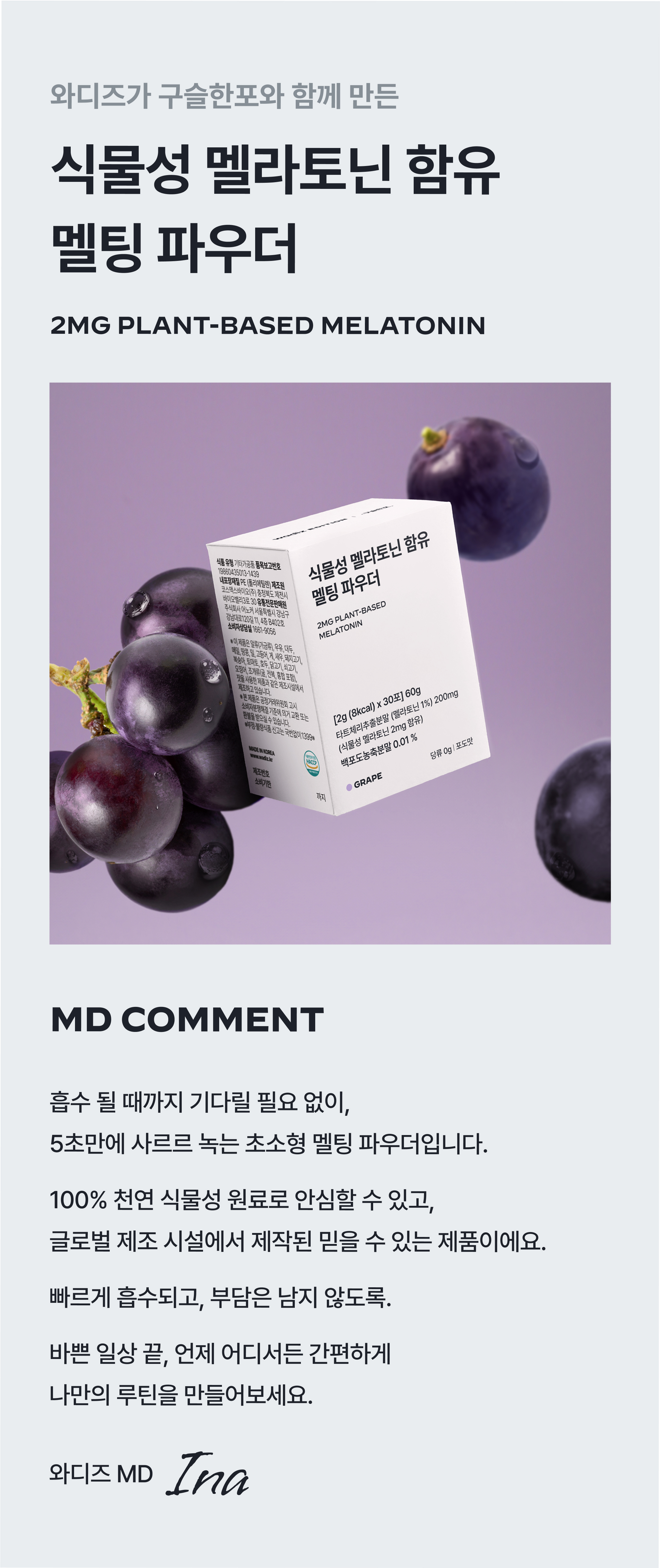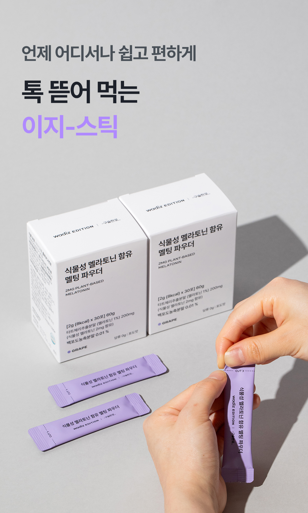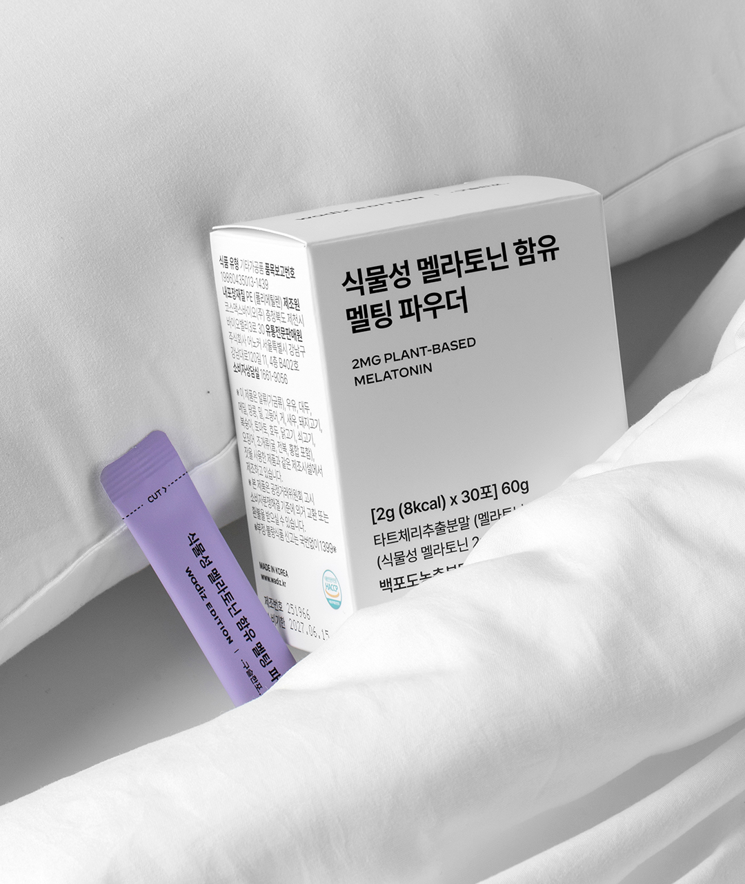 A. 멜팅 파우더는 빈속에 먹어도 무방한 당 함량 0%의 일반 식품 멜라토닌으로, 물 없이 가볍게 섭취가 가능해, 직전에도 더 부룩함 없이 편안하게 섭취가 가능합니다.