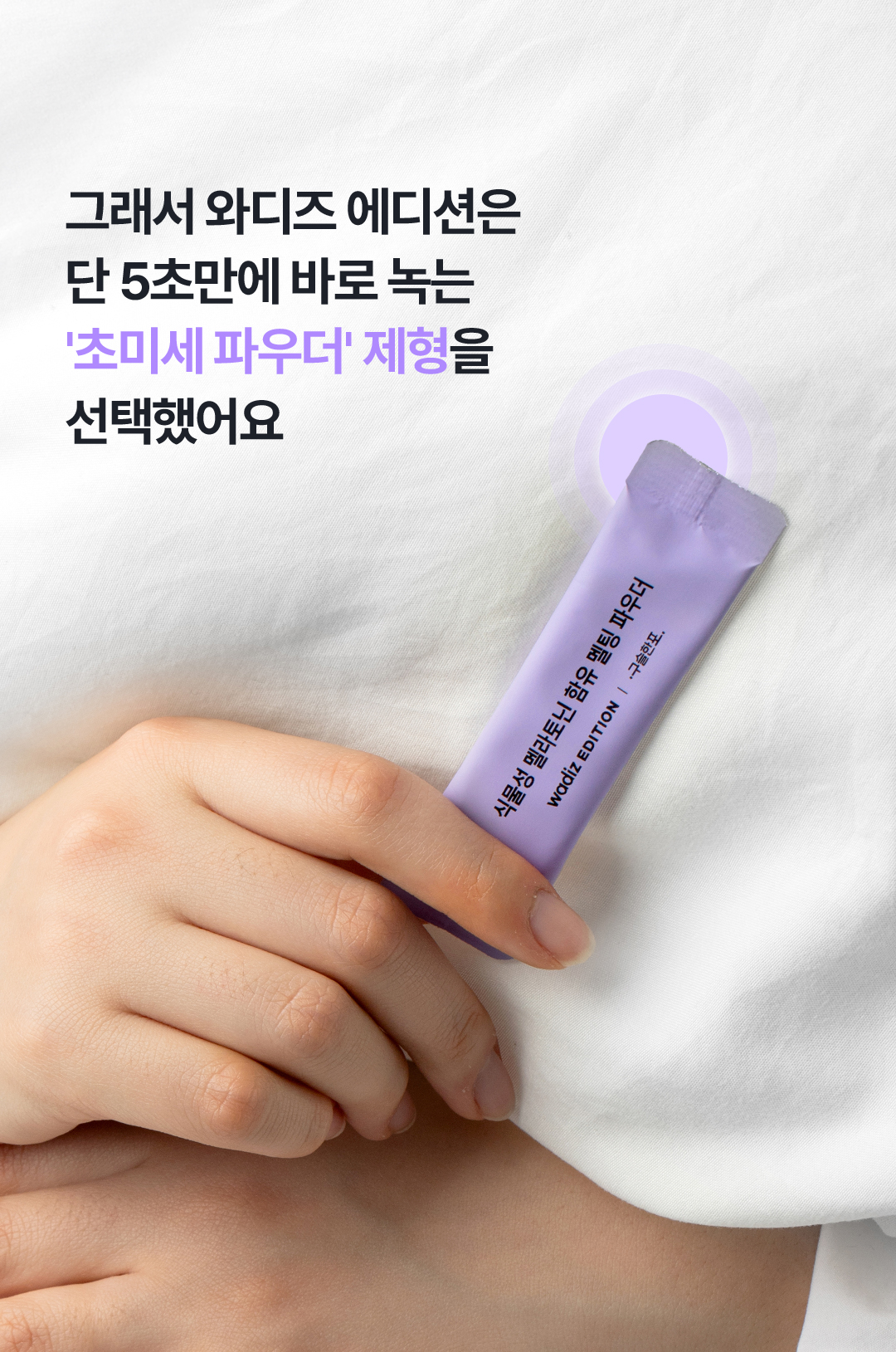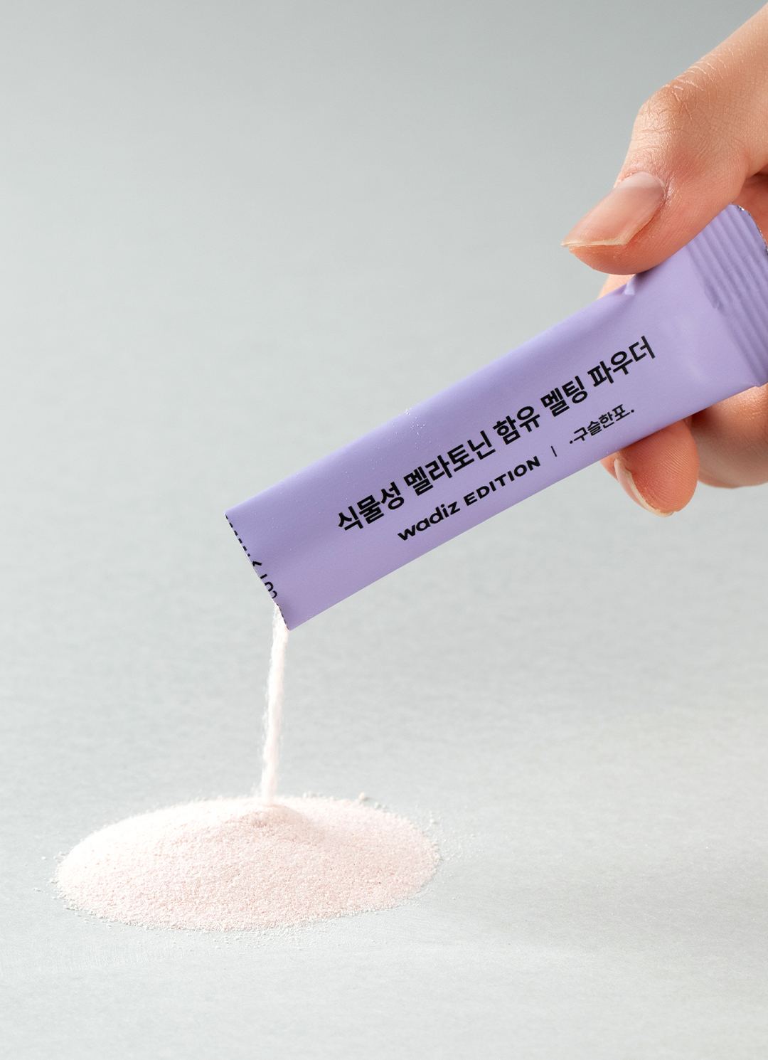 A. 멜팅 파우더를 혓바닥 위에 털어넣고 5초간 머금어 녹여준 후 가볍게 삼켜주세요. 물 없이도 아주 고운 입자가 입 안에서 소량의 침과 만나 쉽게 녹아 흡수됩니다.