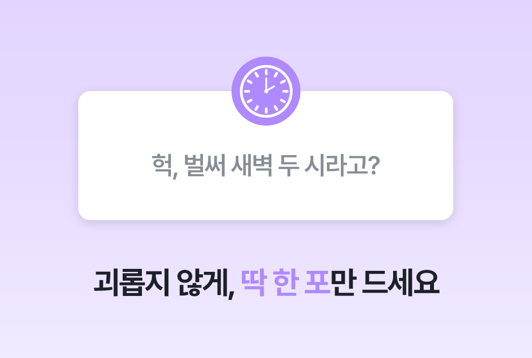 A. 휴식하기전 10분 전 섭취를 권장드립니다. 매일 규칙적인 1포 섭취를 기본으로 개개인에 따라 하루 최대 3포까지 가능합니다.