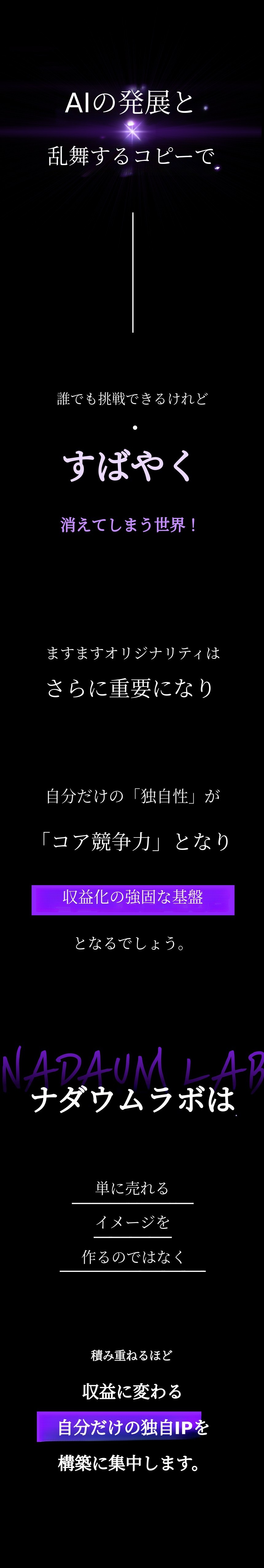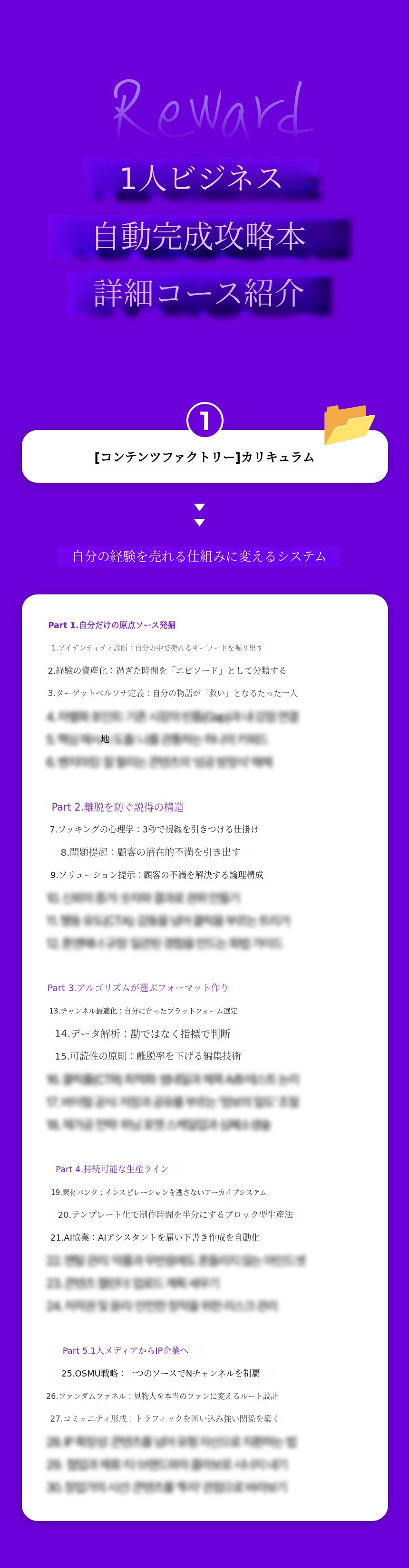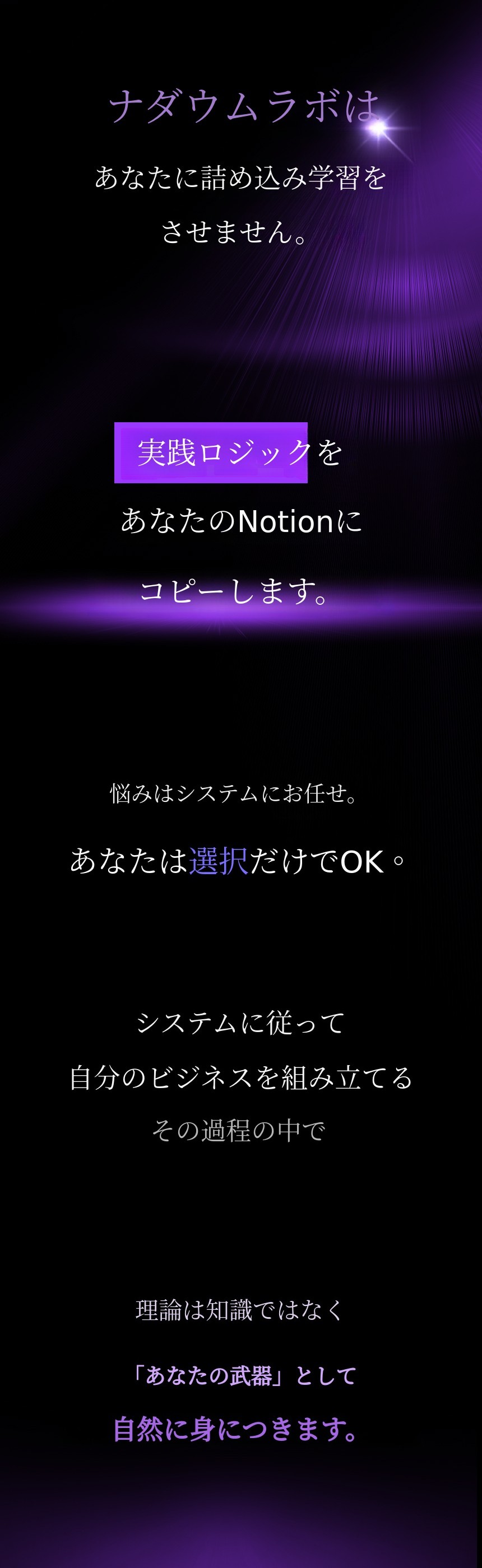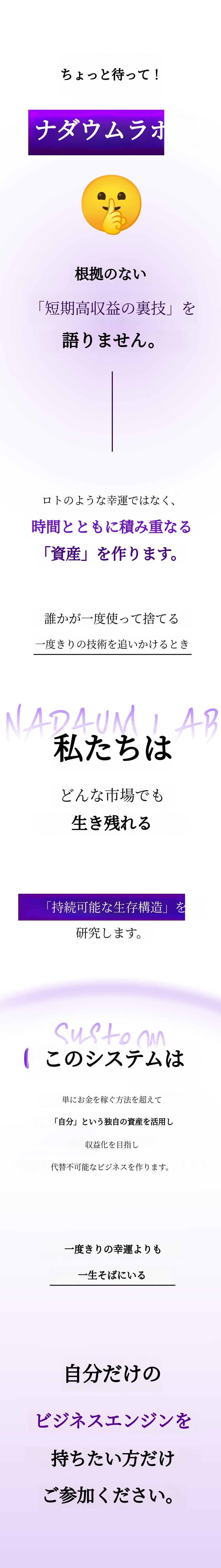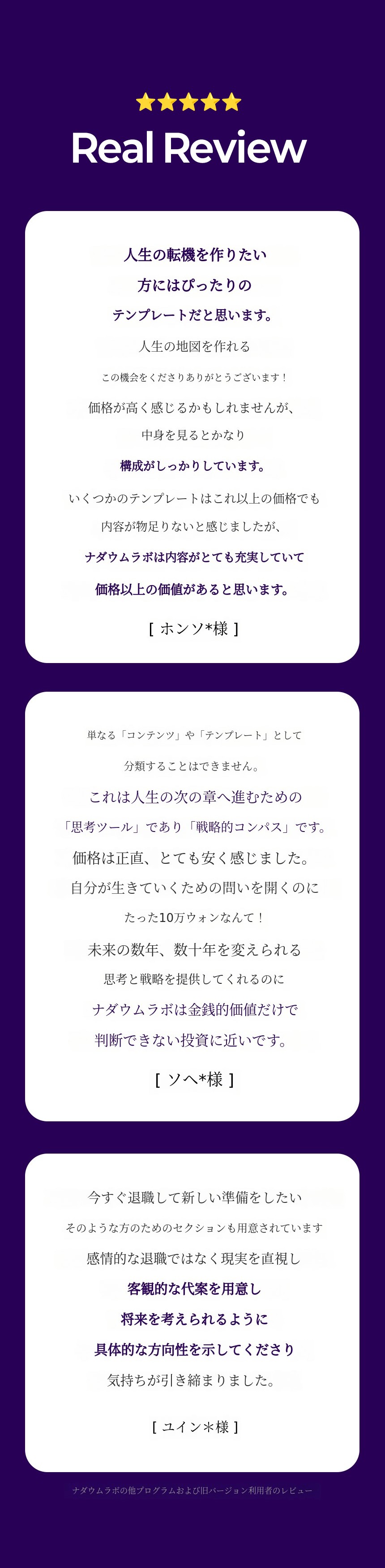 - 著作権案内:ご提供するリワードは著作権法により保護されているナダウムラボの独占的著作物であり、正式なライセンスを購入されたサポーター様のみに提供される資料です。購入者ご本人の個人的な用途以外での他人への共有、無断配布、商業利用、二次加工などを禁止します。