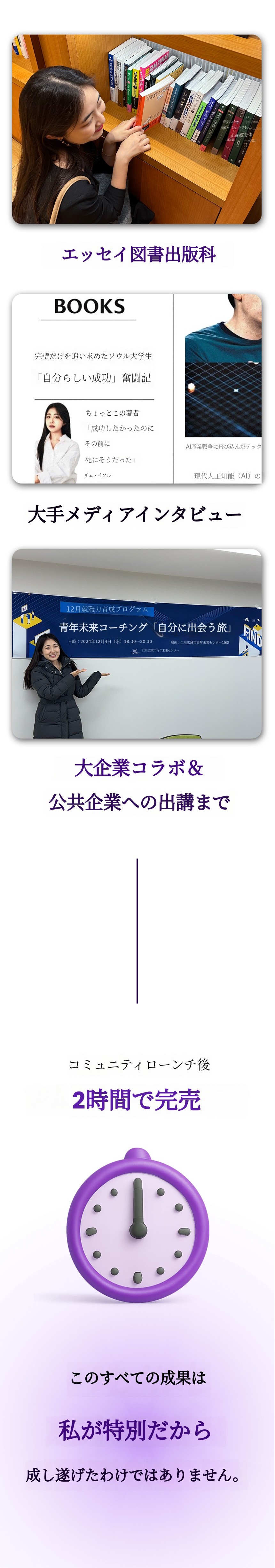 「自分の名前」で独立を夢見る方々に出会うために Wadizにやってきました。Wadizは誰かの新しい挑戦を応援し、共に成長するプラットフォームだと思います。私自身も試行錯誤を経験したので、準備のない退職や起業がどれほど危険かよく知っています。だからこそ、自分の名前で給料を作りたい方々ができるだけ試行錯誤を減らし、自分だけのシステムを構築できる実践ガイド をWadizで一番最初にお見せしたかったのです。