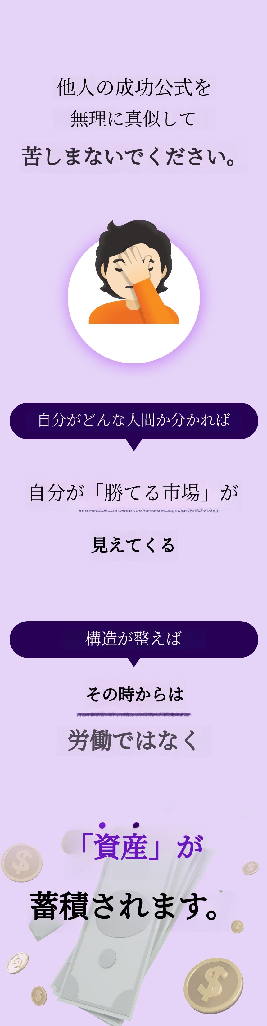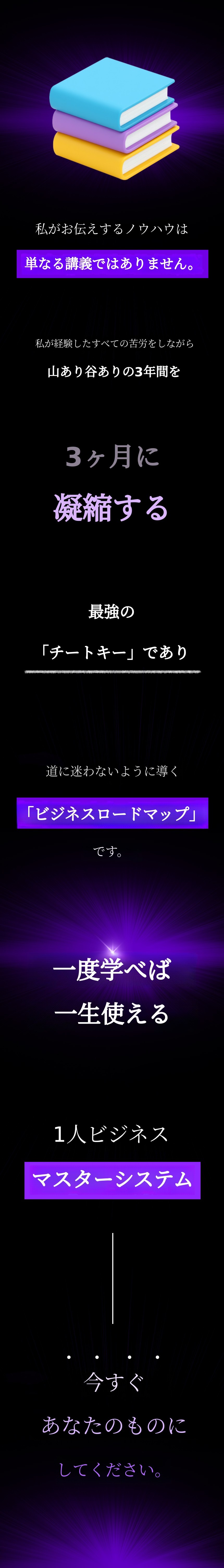 ※ 上記の要件はサポーター様の成功した自立のための最低限の仕組みです。誠実に取り組んでいただく分、私もすべてのノウハウを注ぎます。