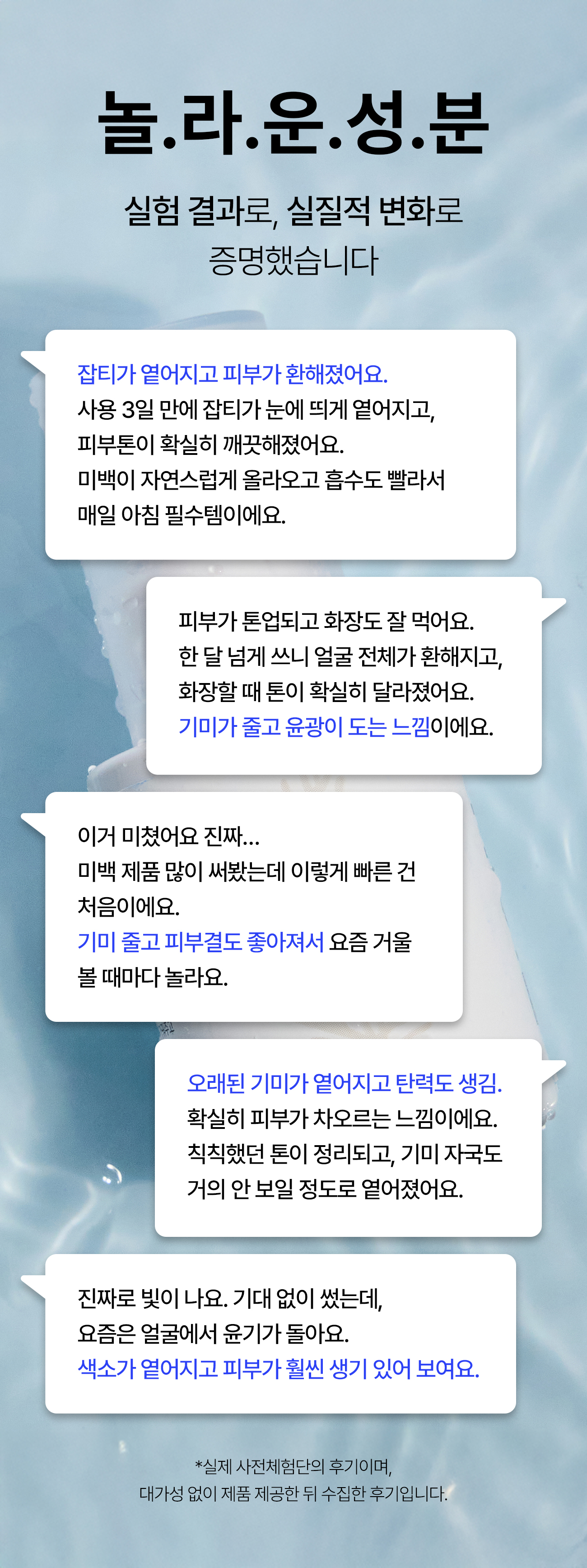 A. 나노에멀젼화 기술로 성분이 빠르게 흡수되어 겹쳐 발라도 밀림이나 무거움 없이 가볍게 사용할 수 있습니다.