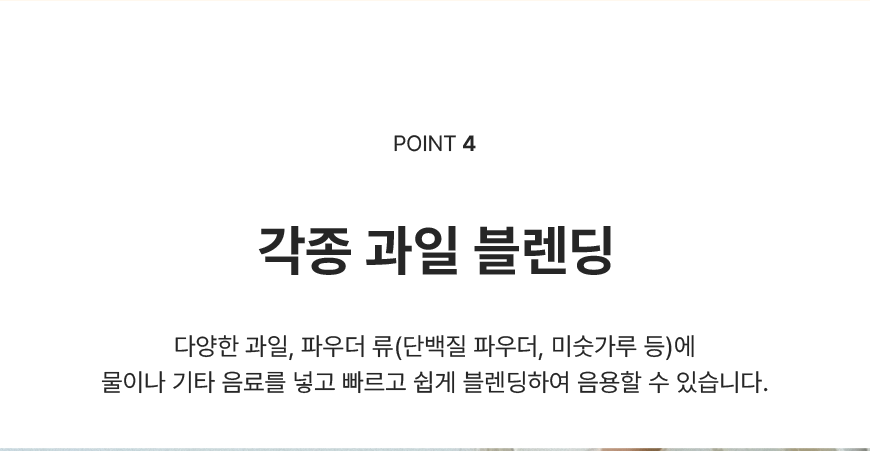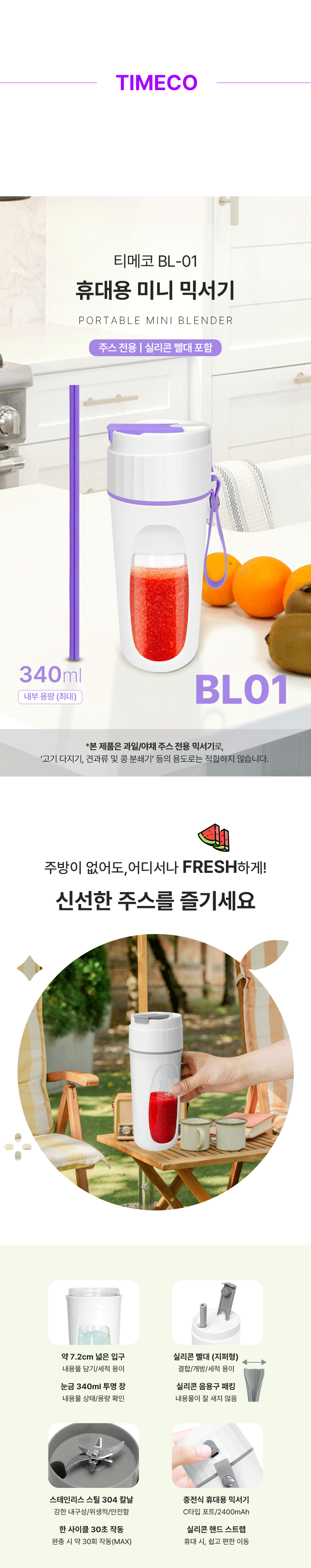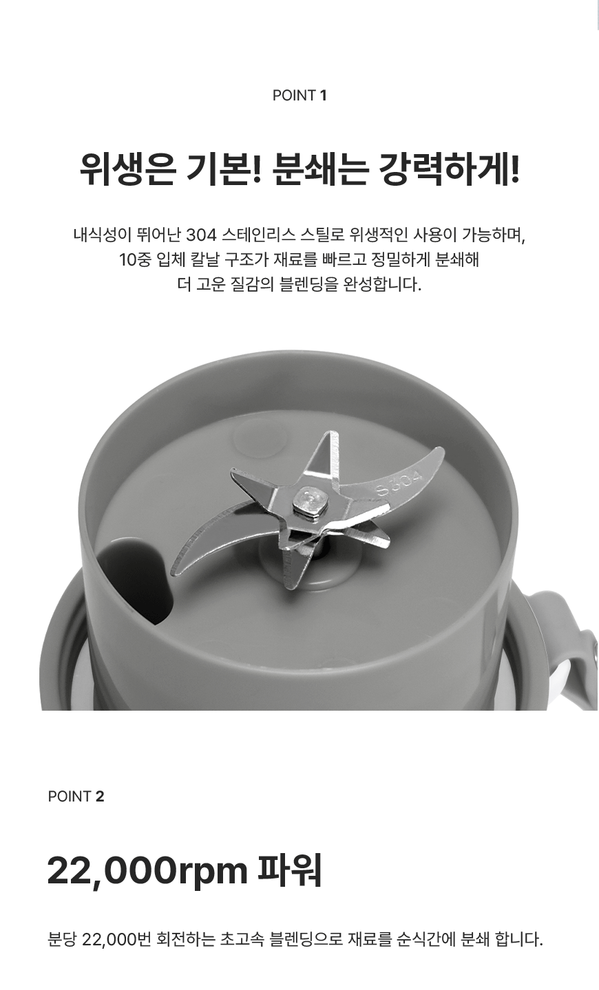 바쁜 출근길, 헬스장, 캠핑장, 여행지.. 이제는 편리하고 간편하게 음료를 즐기실 수 있는 제품 소개해드립니다. 휴대성, 안전성, 편리함 모두 갖춘 제품입니다. 기본적으로 무선 충전식으로 휴대가 가능하며 지퍼형 실리콘 빨대로 빨대세척도 가능합니다. 약 7.2cm의 넓은 입구로 재료를 넣거나 세척하기도 간편하며, 손에 들고 다니기 쉽게 실리콘 핸드 스트랩도 장착되어 있습니다. 아침에 신선한 과일주스를 바로 만들어 마시고 싶으실때, 헬스 후 단백질 쉐이크를 만들때, 캠핑 여행 피크닉 등 야외활동에서 건강을 챙기실 수 있는 제품이니 많은 관심 부탁드립니다. 감사합니다.