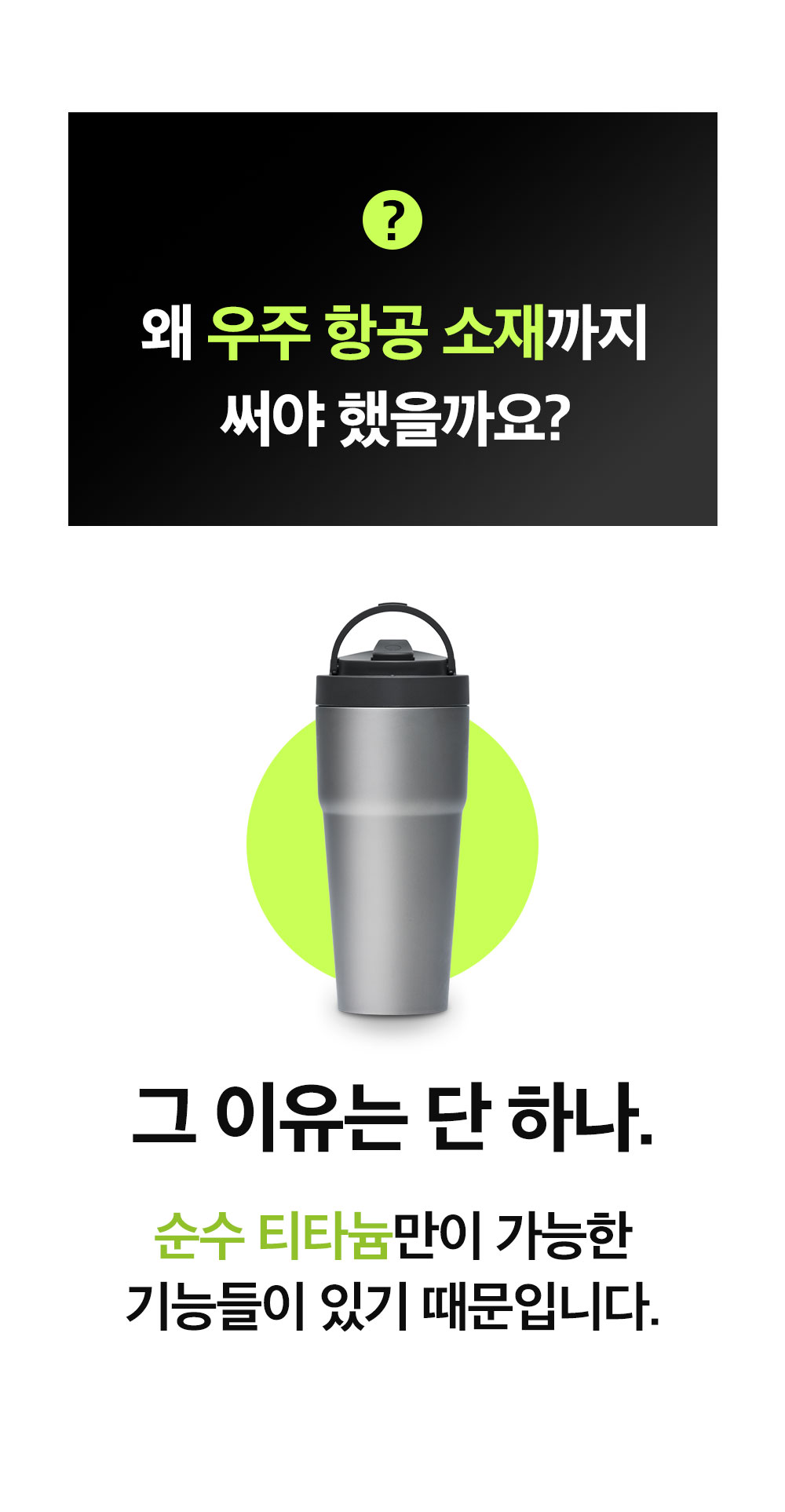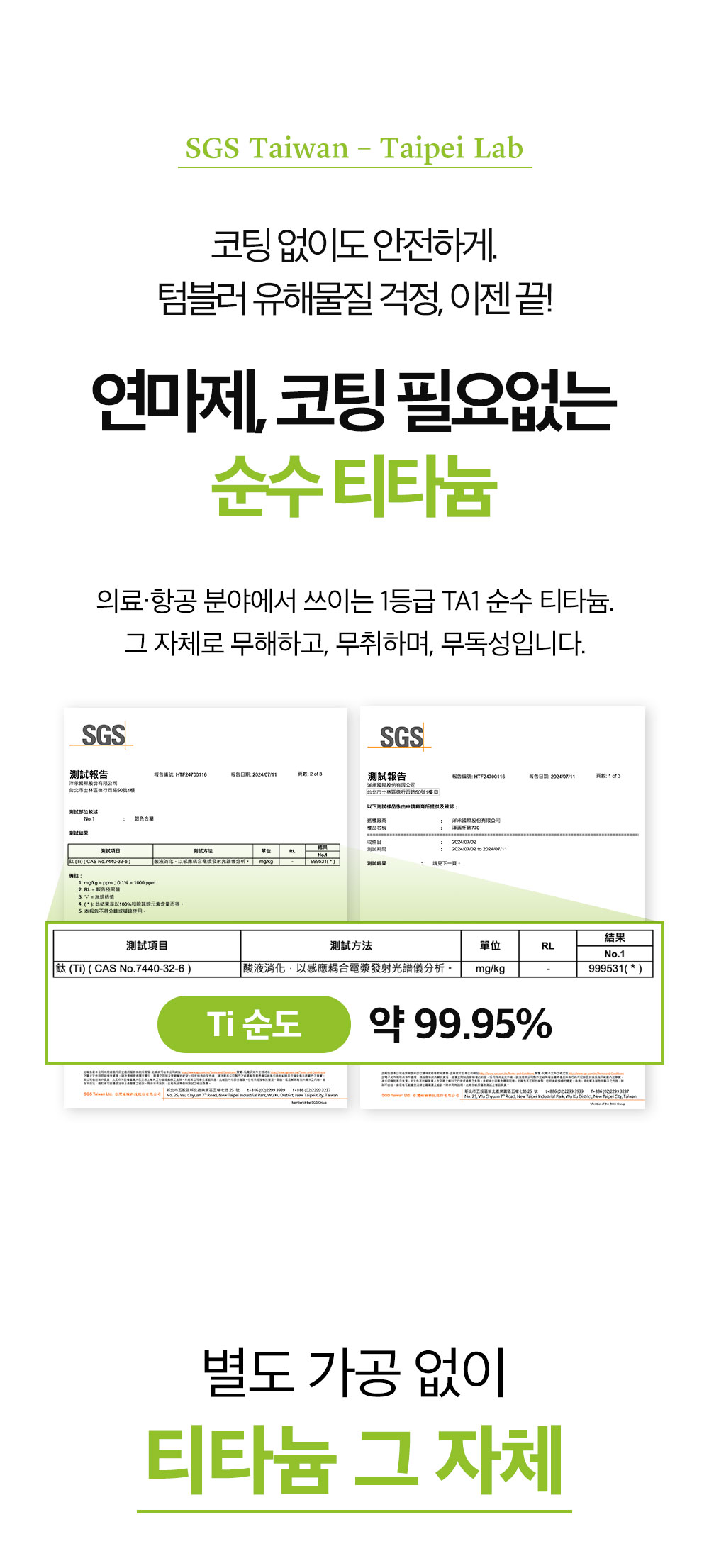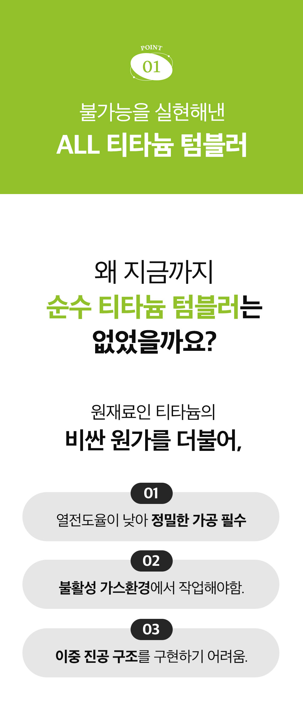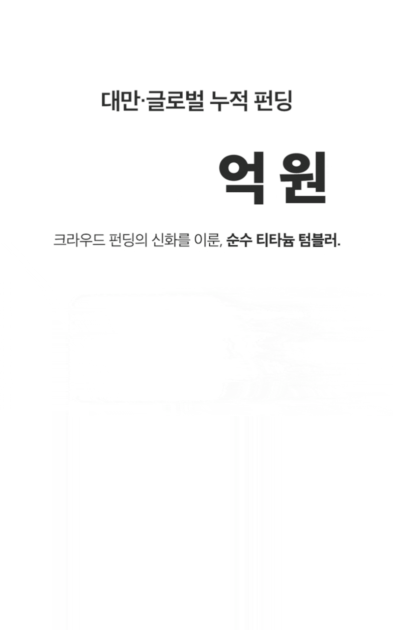 이번에 소개하는 순수 올티타늄 텀블러는 TA1등급의 99.9% 순수 티타늄 소재로 제작한 하이엔드 텀블러로 대만 펀딩 시 16.5억 펀딩을 달성한 최고의 텀블러라 약속드릴 수 있습니다.