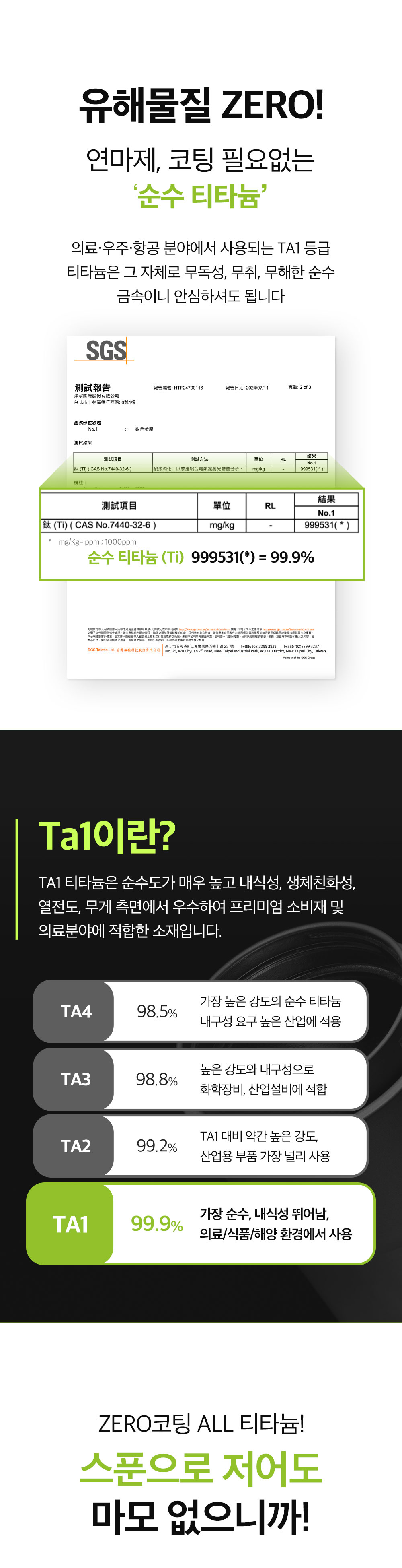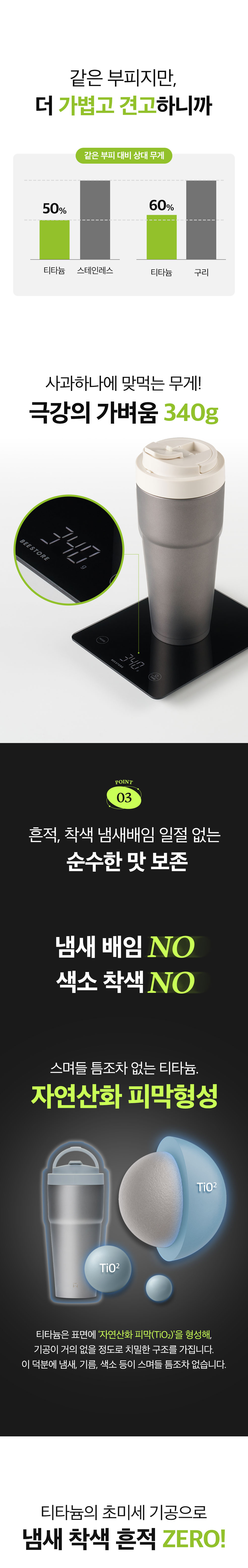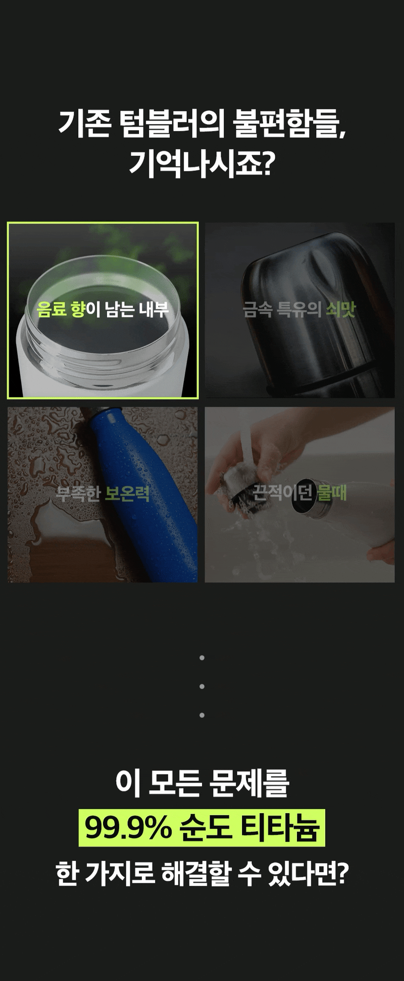 이번에 소개하는 순수 올티타늄 텀블러는 TA1등급의 99.9% 순수 티타늄 소재로 제작한 하이엔드 텀블러로 대만 펀딩 시 16.5억 펀딩을 달성한 최고의 텀블러라 약속드릴 수 있습니다.