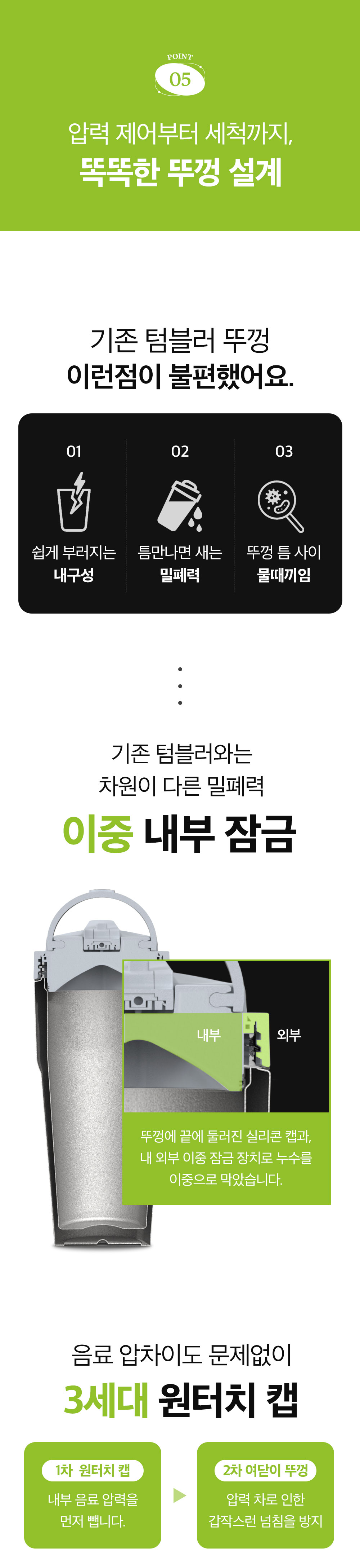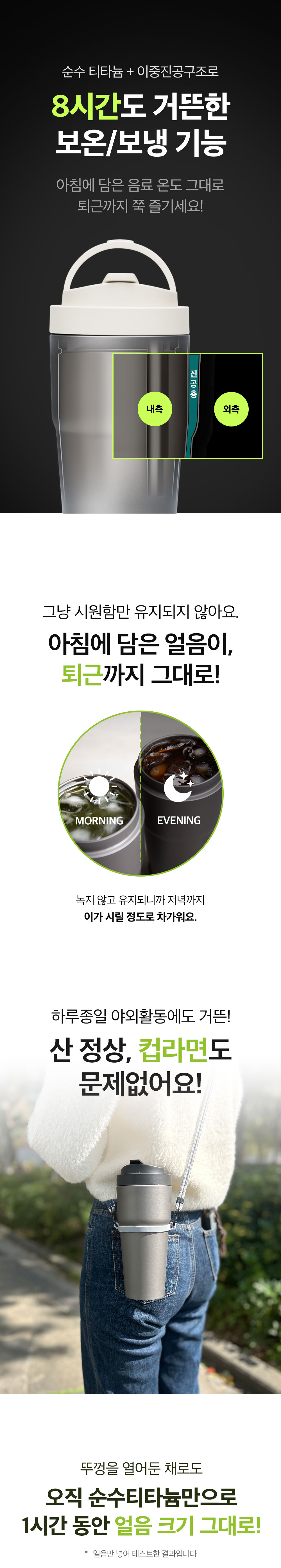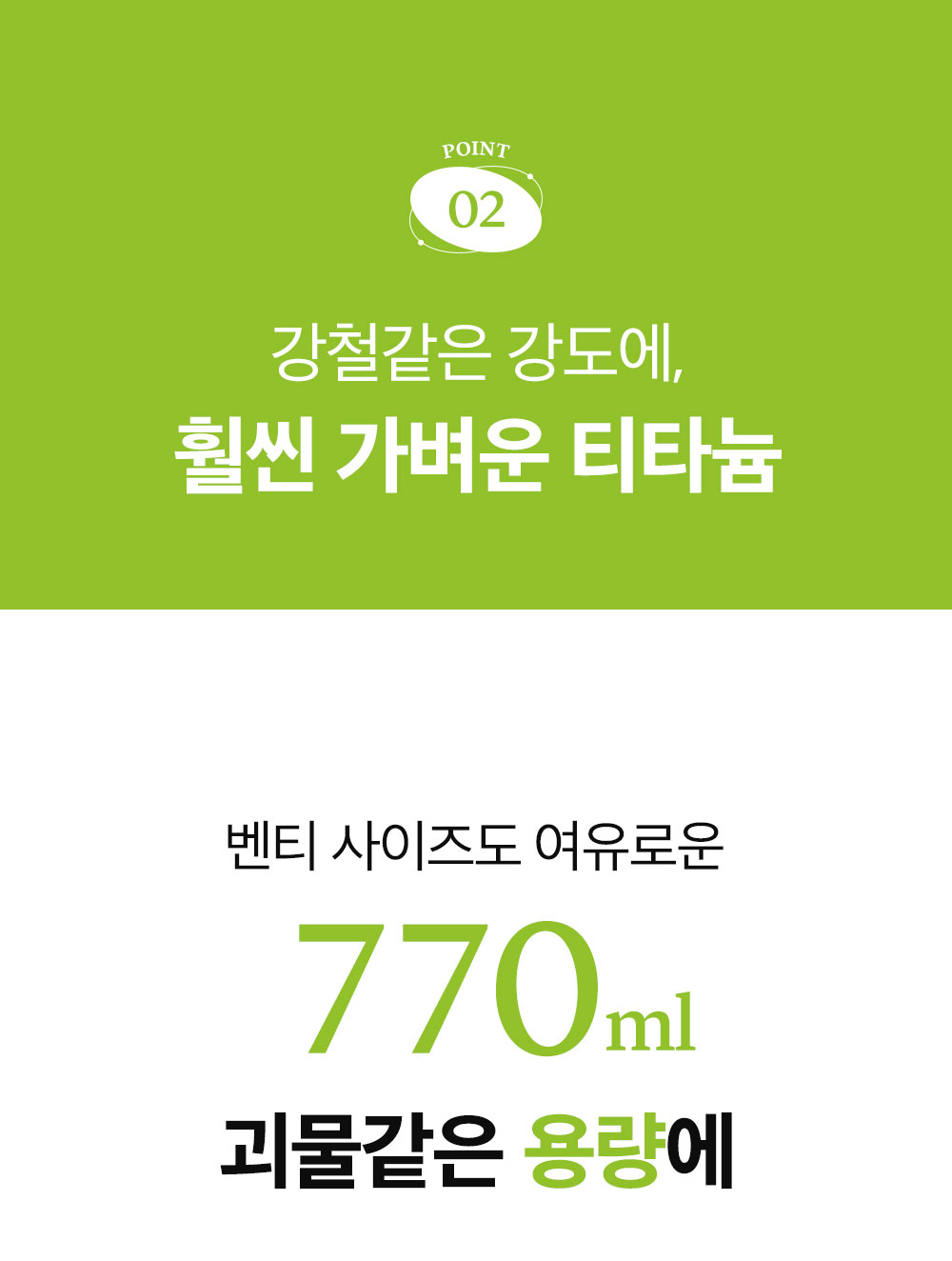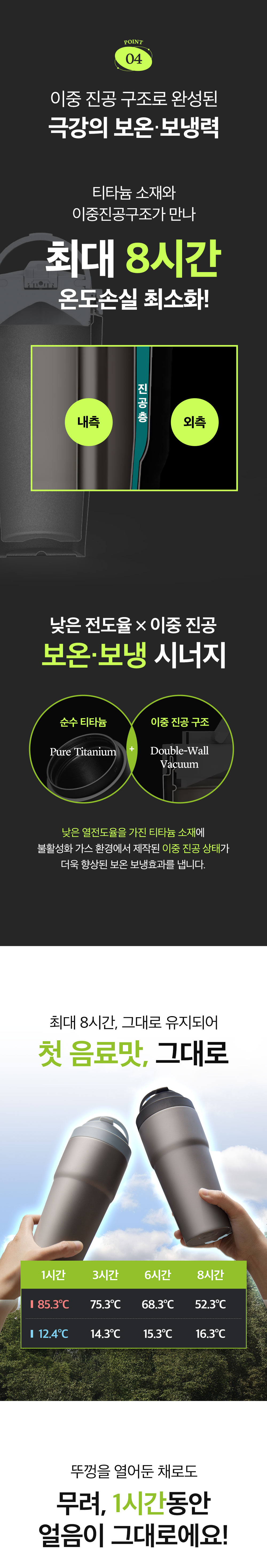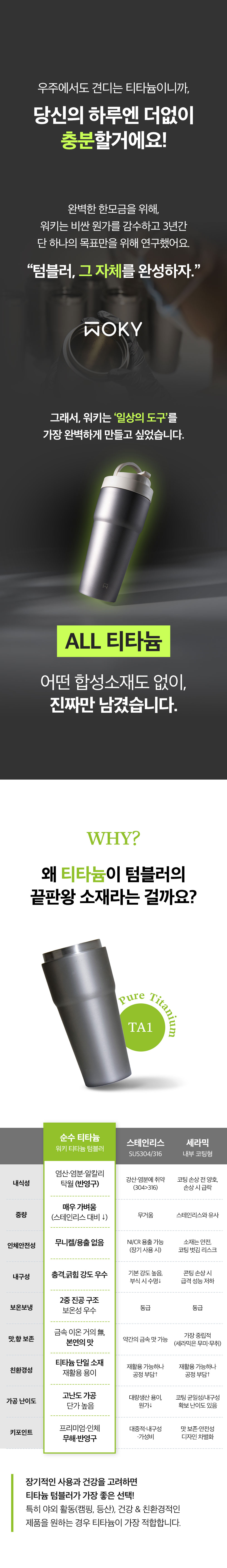 각종 디자인 대상 수상은 물론 워키 만의 3세대 텀블러 뚜껑을 적용하여 보온 보냉은 물론 사용성을 획기적으로 개선한 혁신적인 순수 티타늄 텀블러입니다.