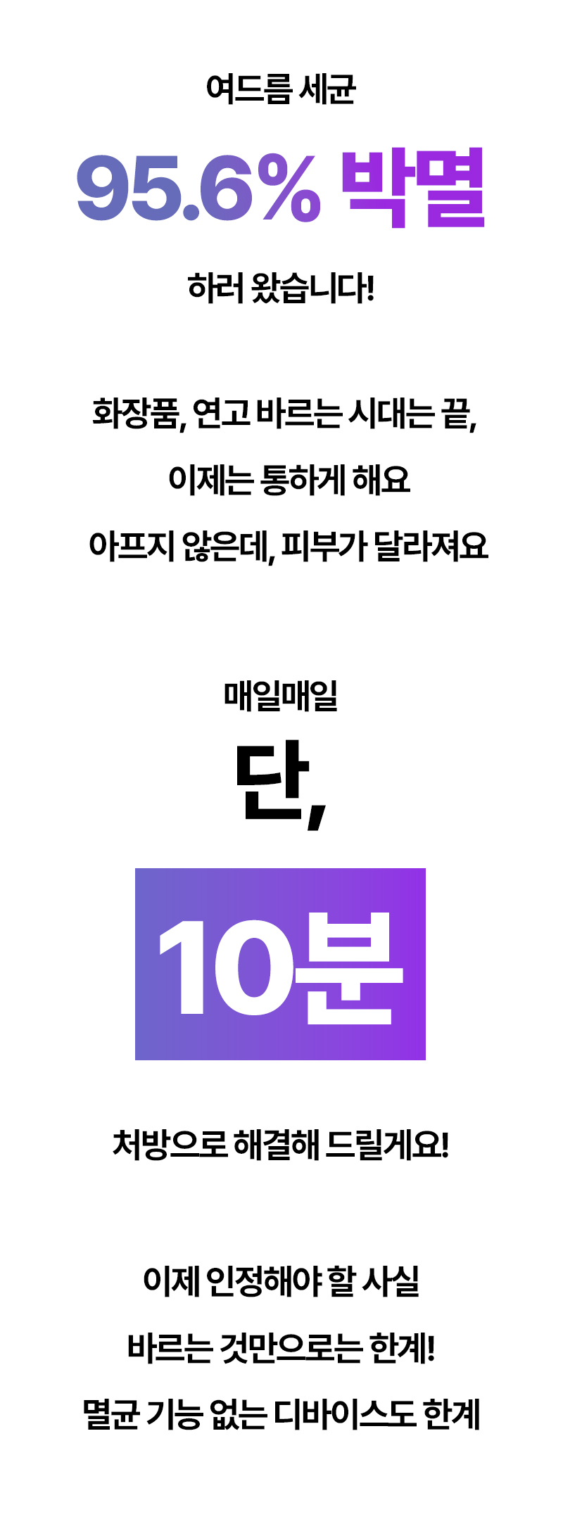 저희는 단순히 외적인 피부 개선에 그치지 않습니다. 항상제를 지양하는 솔루션 제공으로 내면과 외면의 치유와 동시에 개인의 아름다움이 삶에 빛을 발할 수 있도록 좋은 제품으로 최선을 다하겠습니다.