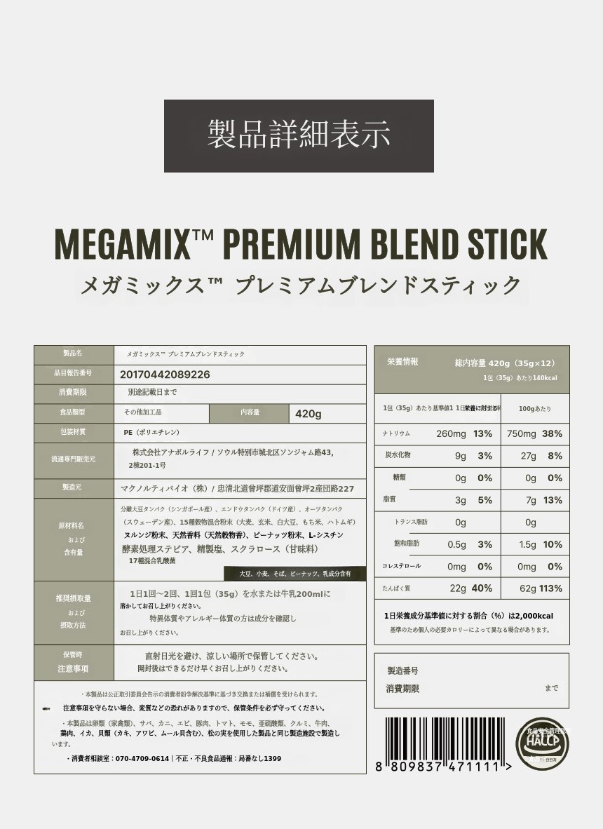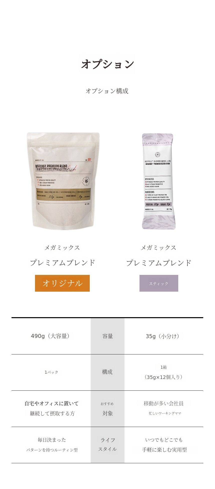 製品詳細情報|メガミックス™ プレミアムブレンド オリジナル&スティック