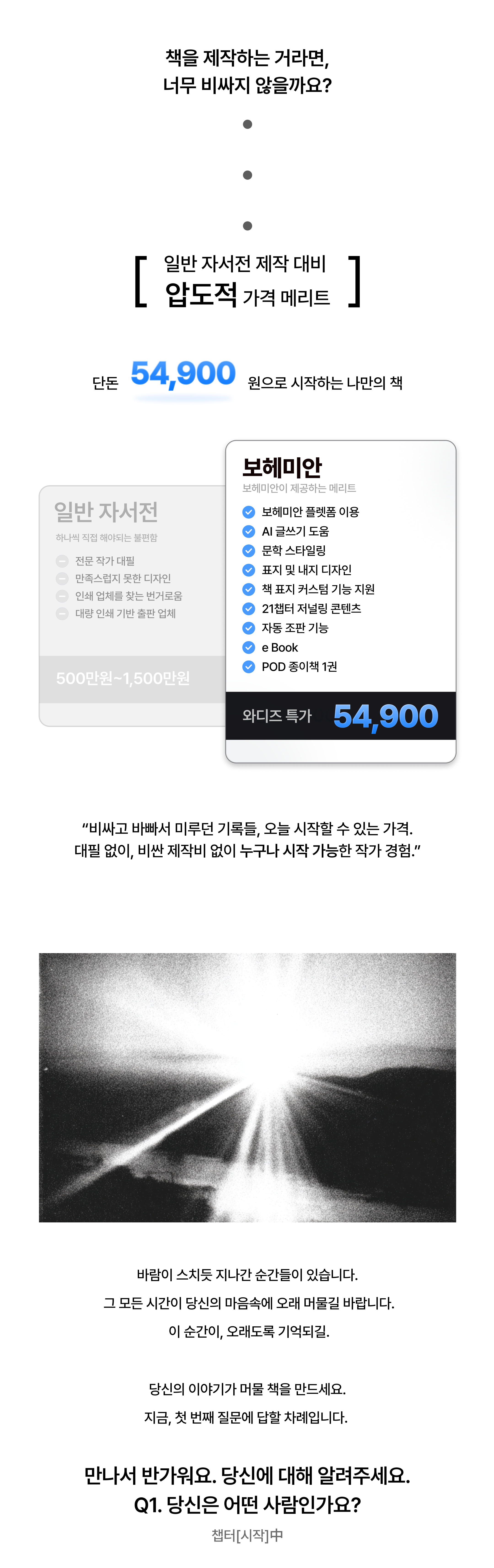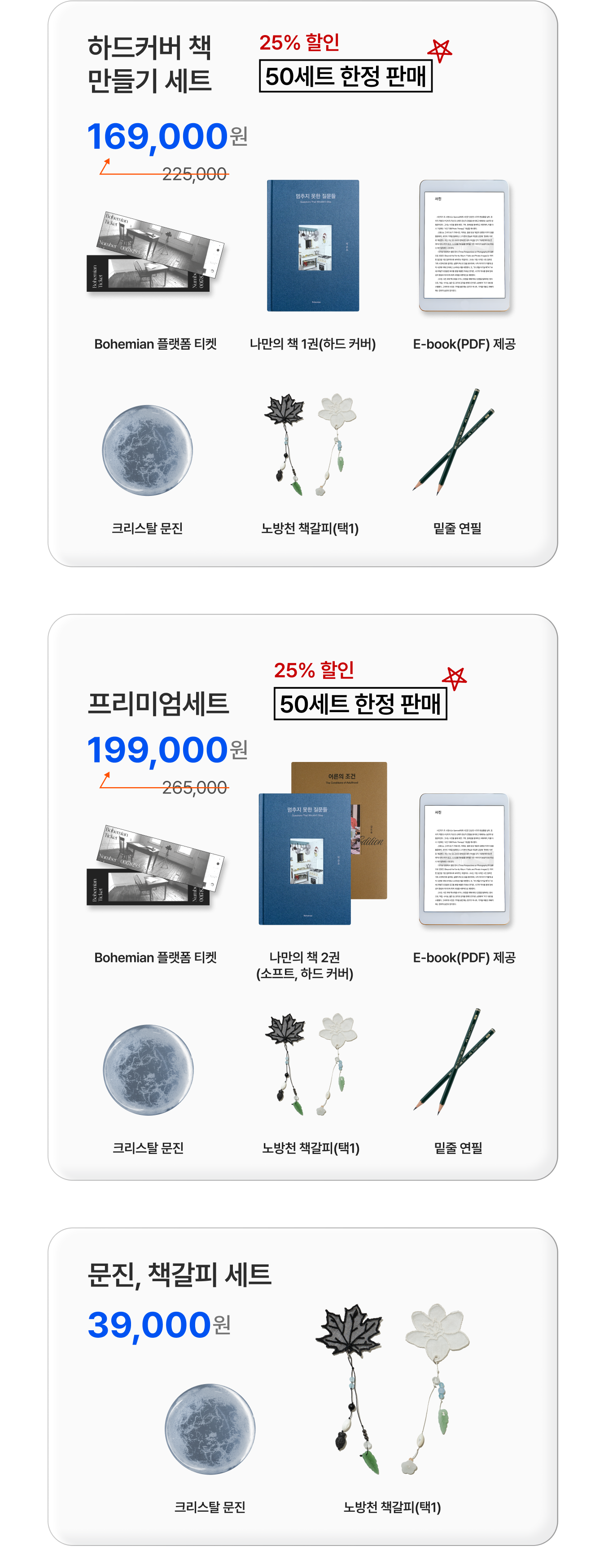 Bohemian은 단순히 책을 판매하는 프로젝트가 아니라, 한 사람의 이야기를 '기록'으로 남기는 프로젝트라고 생각합니다.