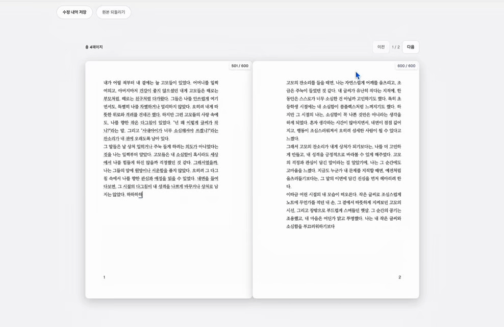 AI가 입력하신 답변을 기반으로 문장을 다듬어 한 챕터의 이야기로 구성해줘요!