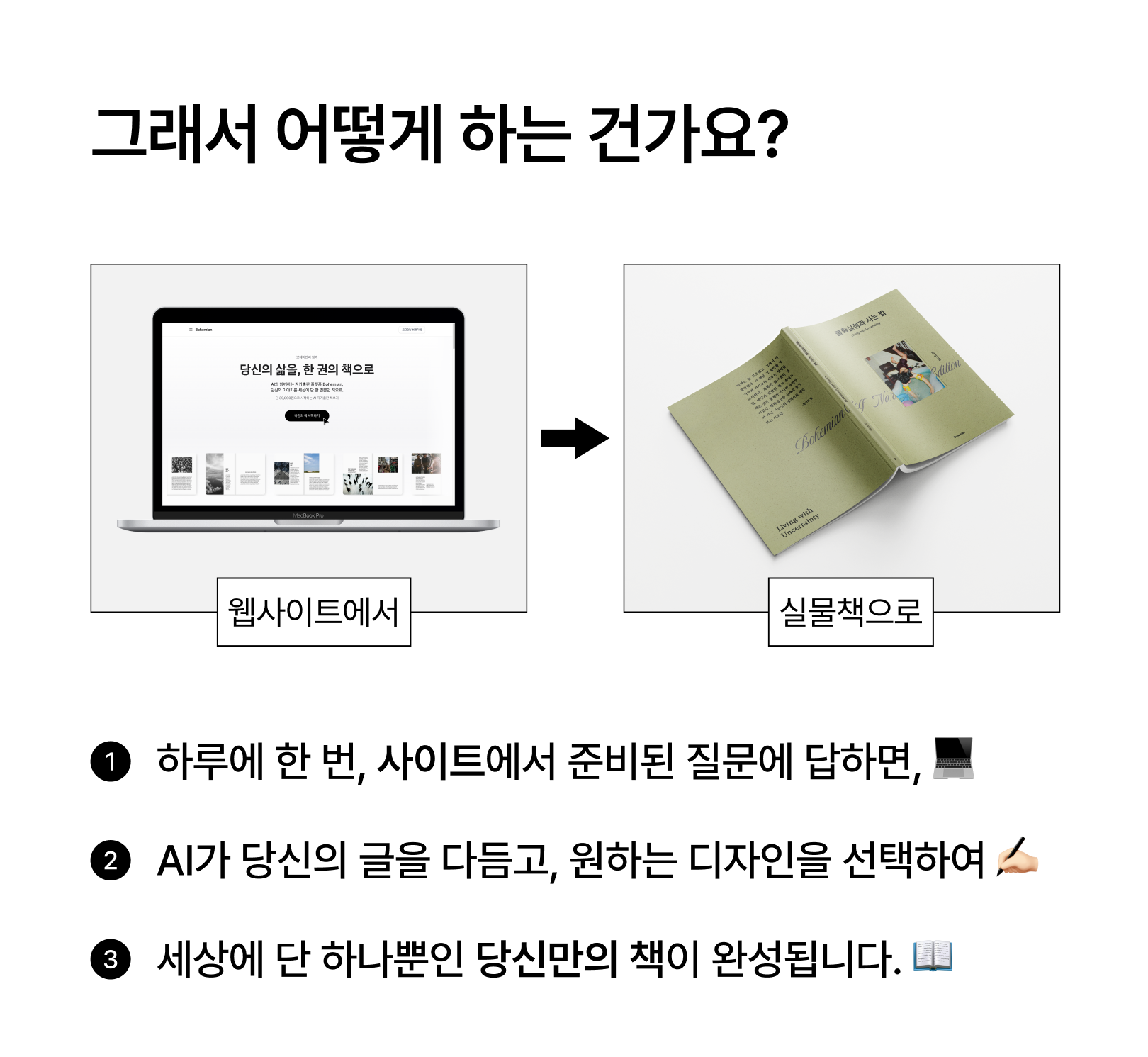 Bohemian 웹사이트에서 질문에 답하며 나만의 책을 완성해보세요 :)