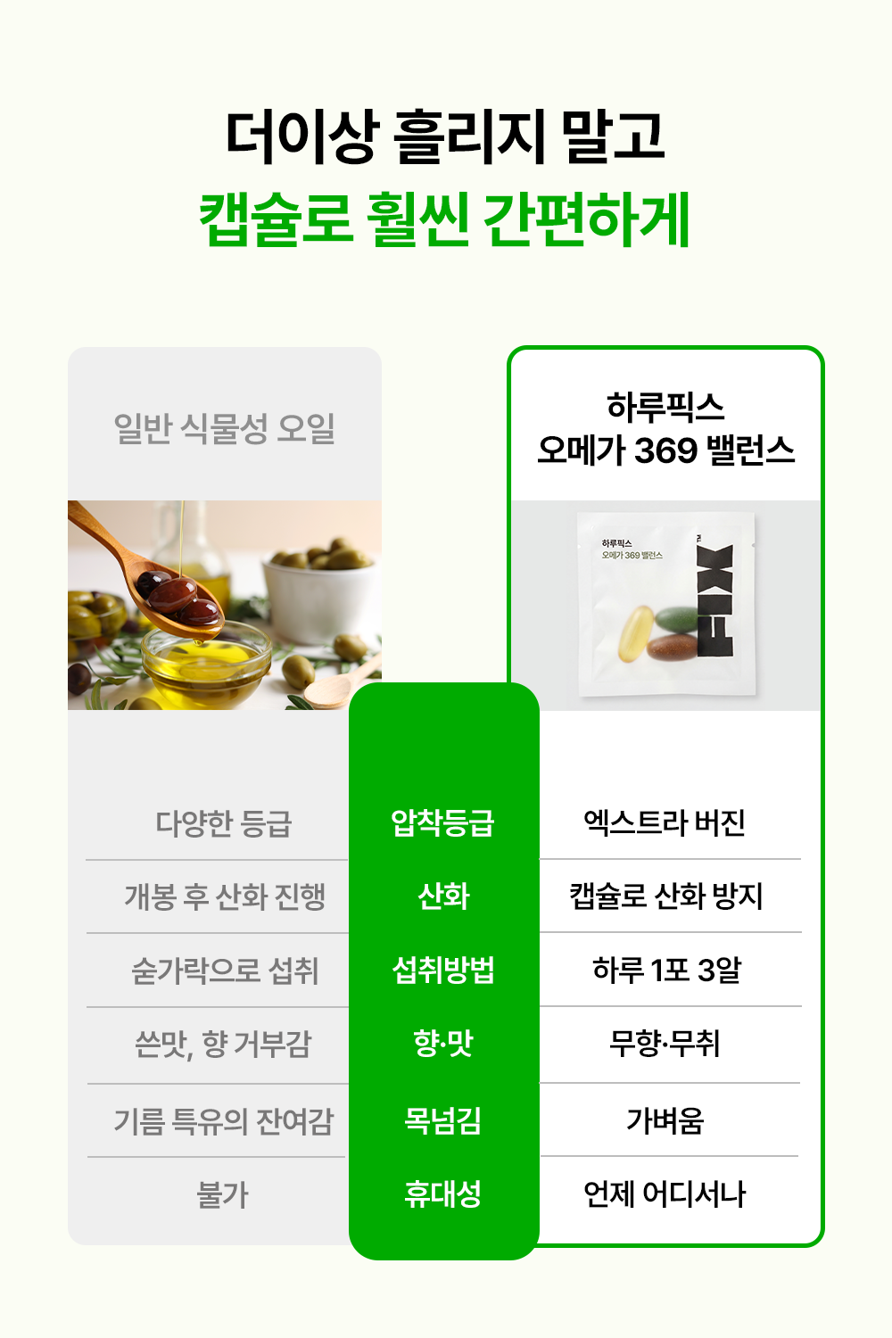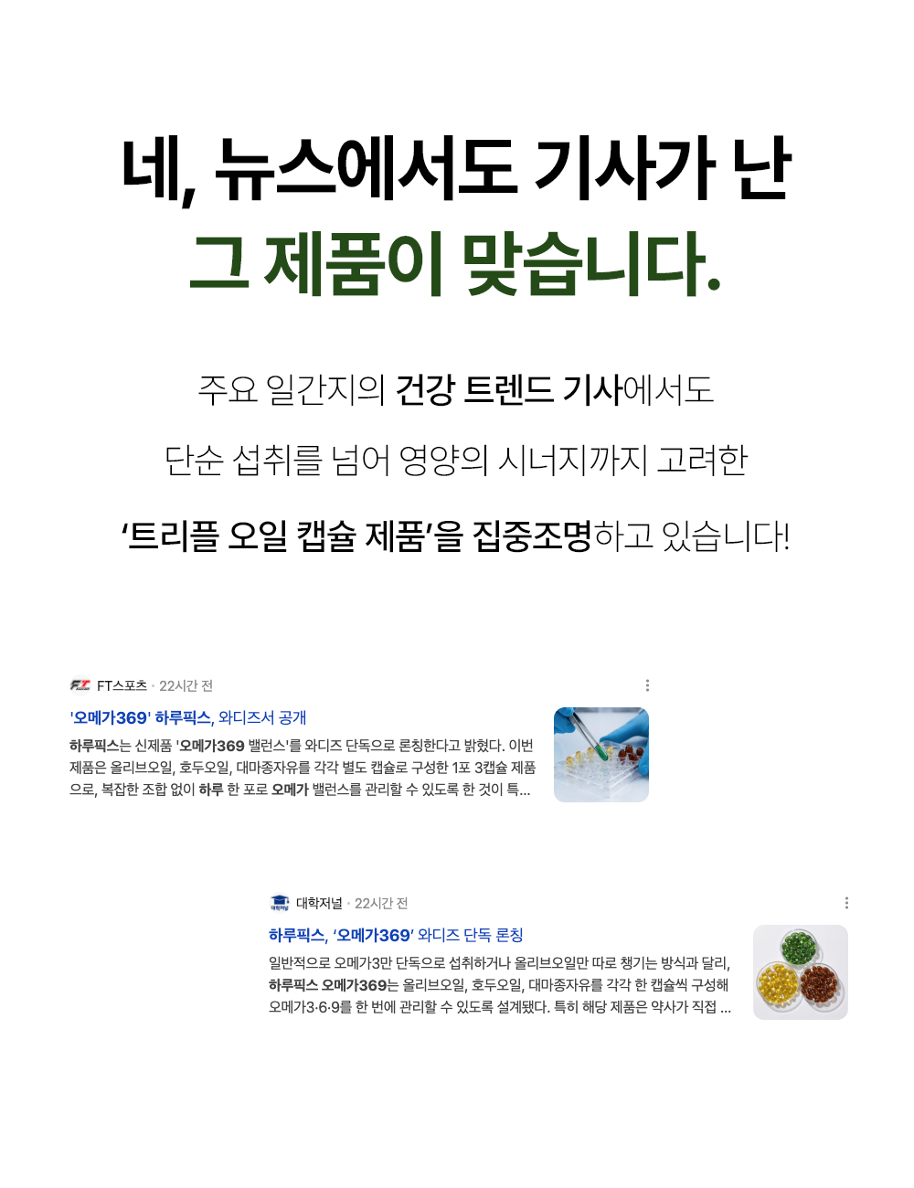 - 오메가369 밸런스 제품은, 기존 유행하는 [오메가3 or 올리브오일] 같은 단일 성분이 아닌, 약사님께서 직접 한국인들의 식습관으로 인해 무너진 오메가369의 비율을 맞춰주기 위한 제품입니다.