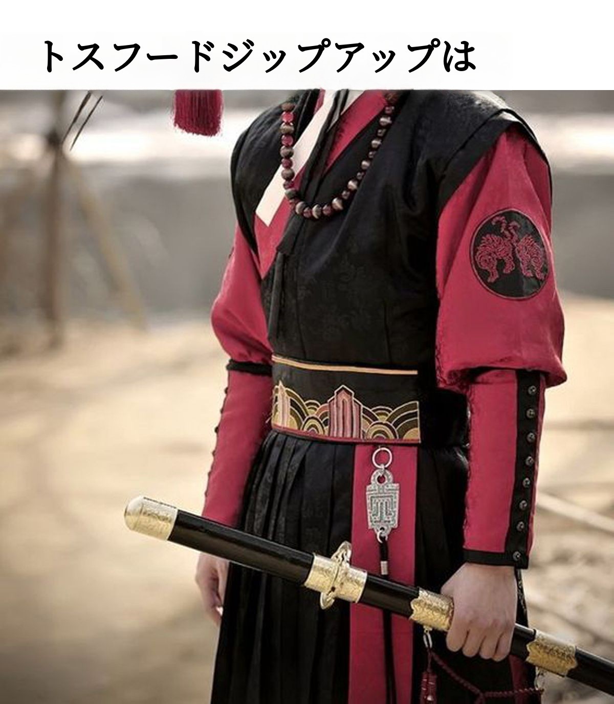 このような武官服のトスに例えて約2.5倍の長さで製作しました。