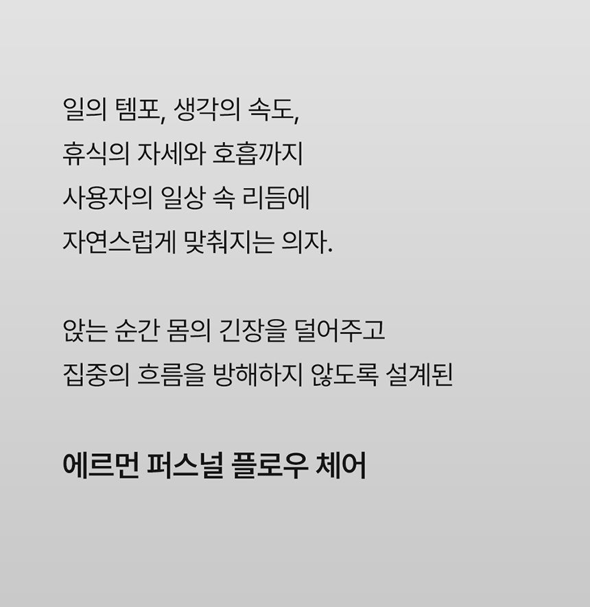 고가의 의자에서만 경험할 수 있었던 탁월한 착석감을 중저가의 가격대에 구현한 에르먼은, 새로운 라이프스타일의 기준을 제시합니다.