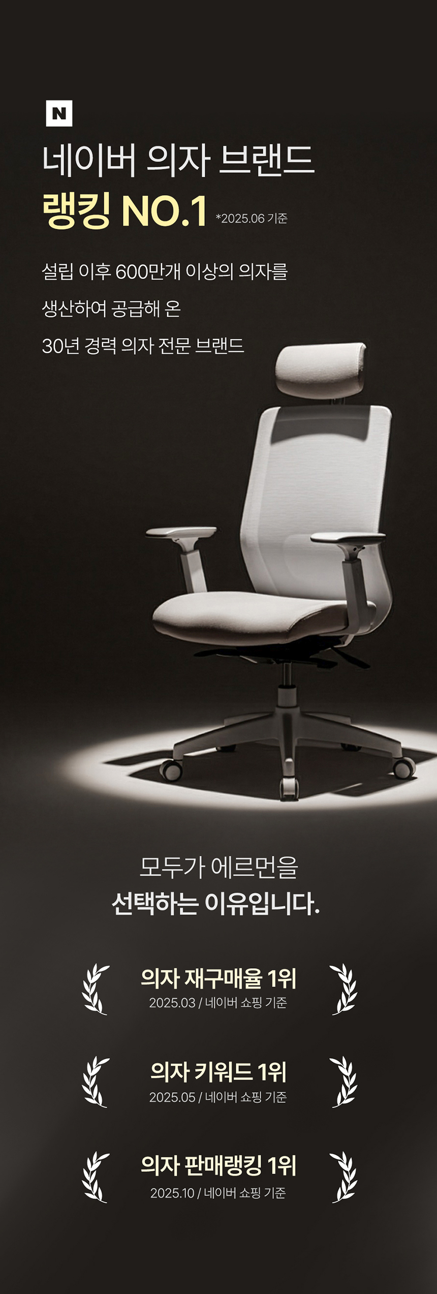에르먼은 2024년, 오랜 시간 의자만을 연구해온 노하우를 바탕으로 탄생한 프리미엄 의자 브랜드입니다.출시 1년 만에 약 100억원의 매출을 달성하며, 단기간에 시장에서 눈에 띄는 성과를 기록했습니다.
