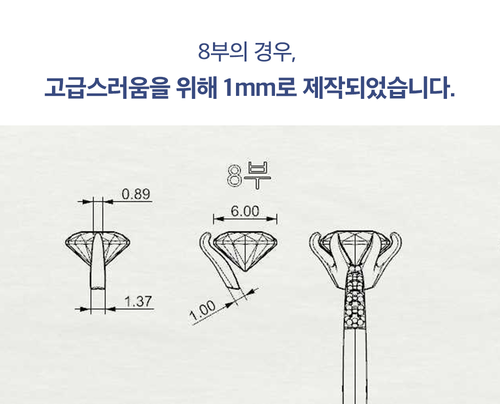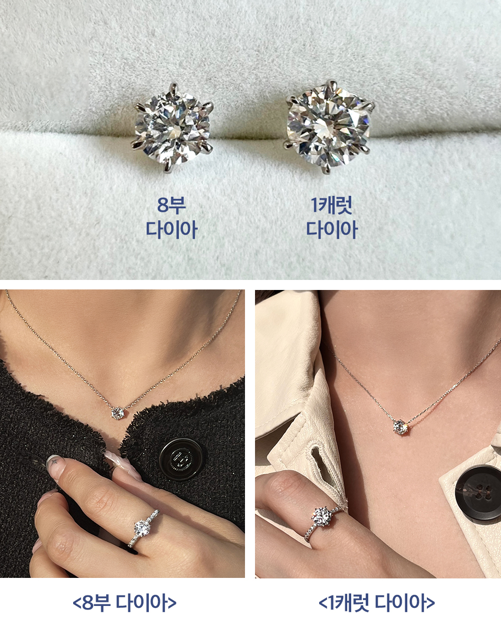 직경 겨우 0.04cm 차이! 단독으로 보면 누구나 1캐럿이라 생각하는 8부 다이아!