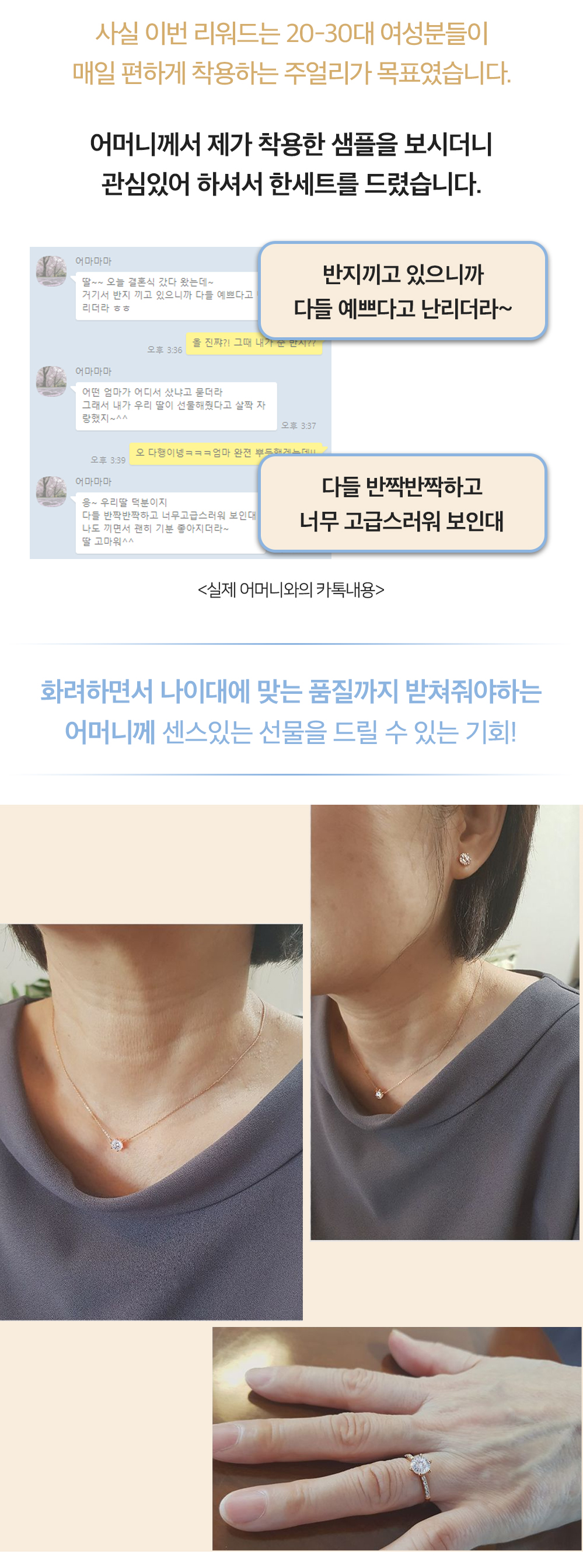 에테르나 주얼리는 20대부터 50대까지 연령에 구애 없이 착용할 수 있는 디자인입니다.