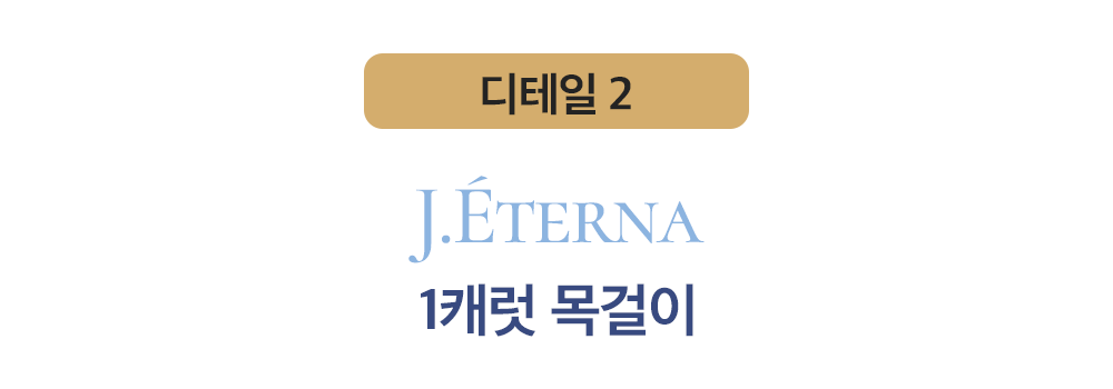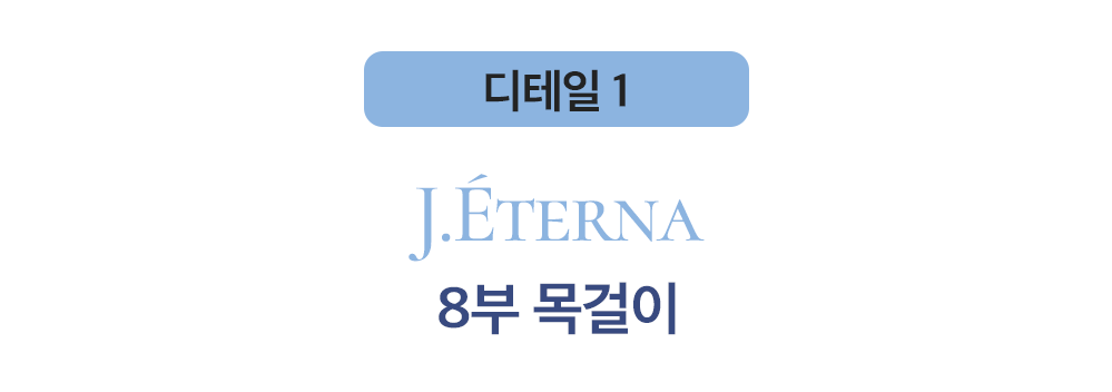 일반 목걸이 잠금장치의 작은 구멍으로 인해 발생하는 불편함을 해결하고자, 새로 디자인한 조금 더 큰 고정 영고리를 사용했습니다. 추가로, 목걸이 잠금 끝에는 J.참을 이용해 포인트를 주었습니다.
