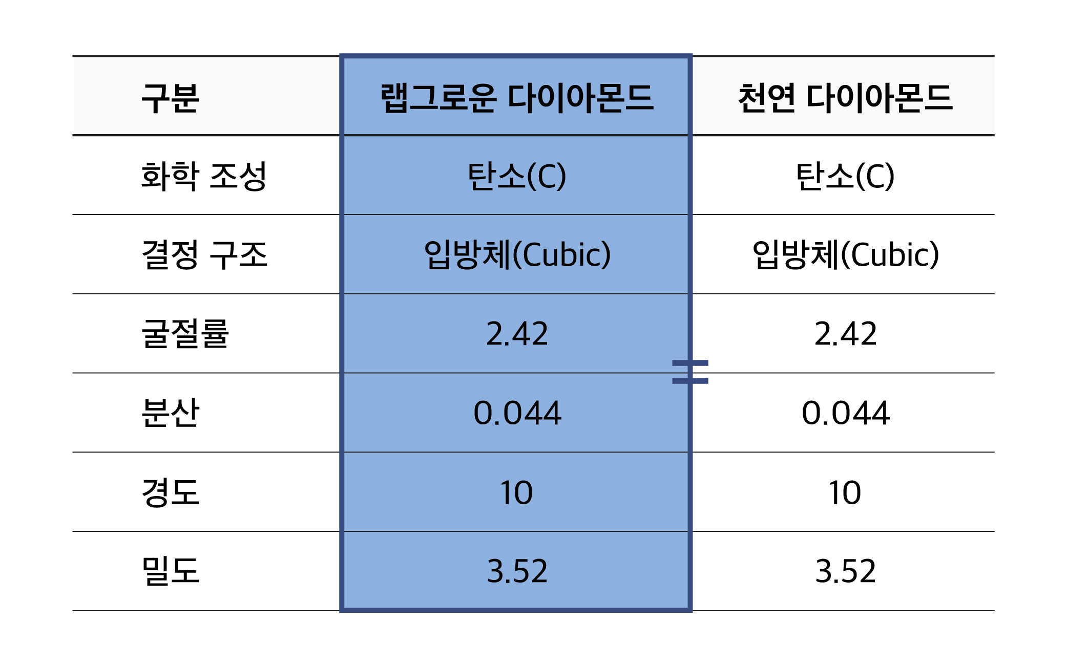 오직 천연 다이아몬드와 랩 그로운 다이아몬드만이 '진짜 다이아몬드'로 인정받습니다.