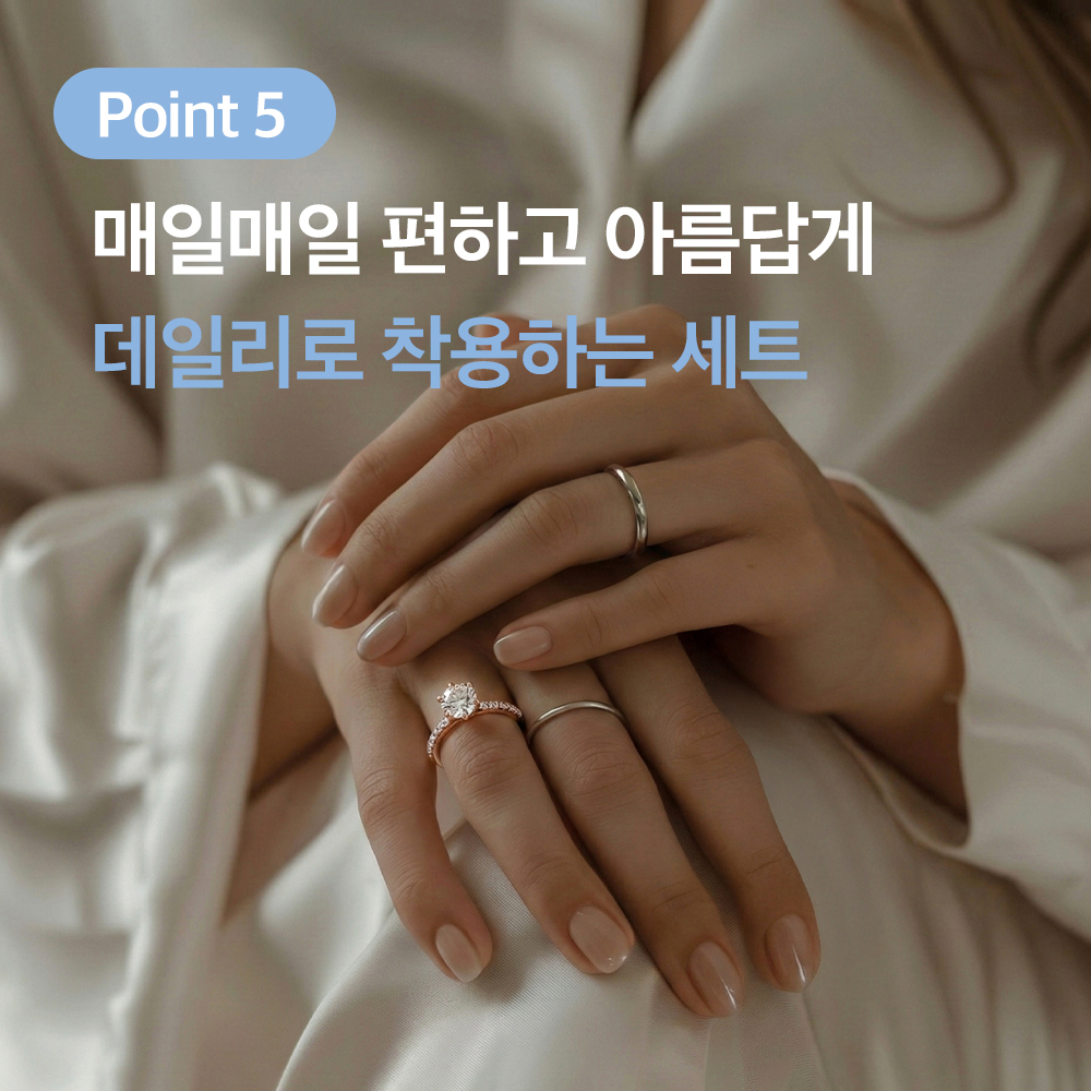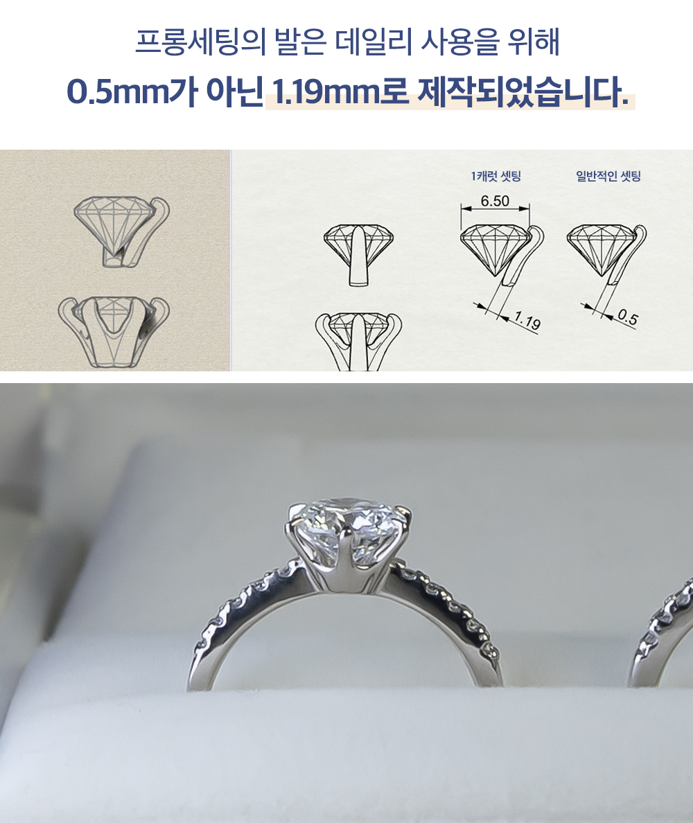 수십여개의 다양한 샘플을 통해 찾은 데일리 활동에 딱 맞는 난집 형태와 프롱 세팅 높이를 구현하였습니다.