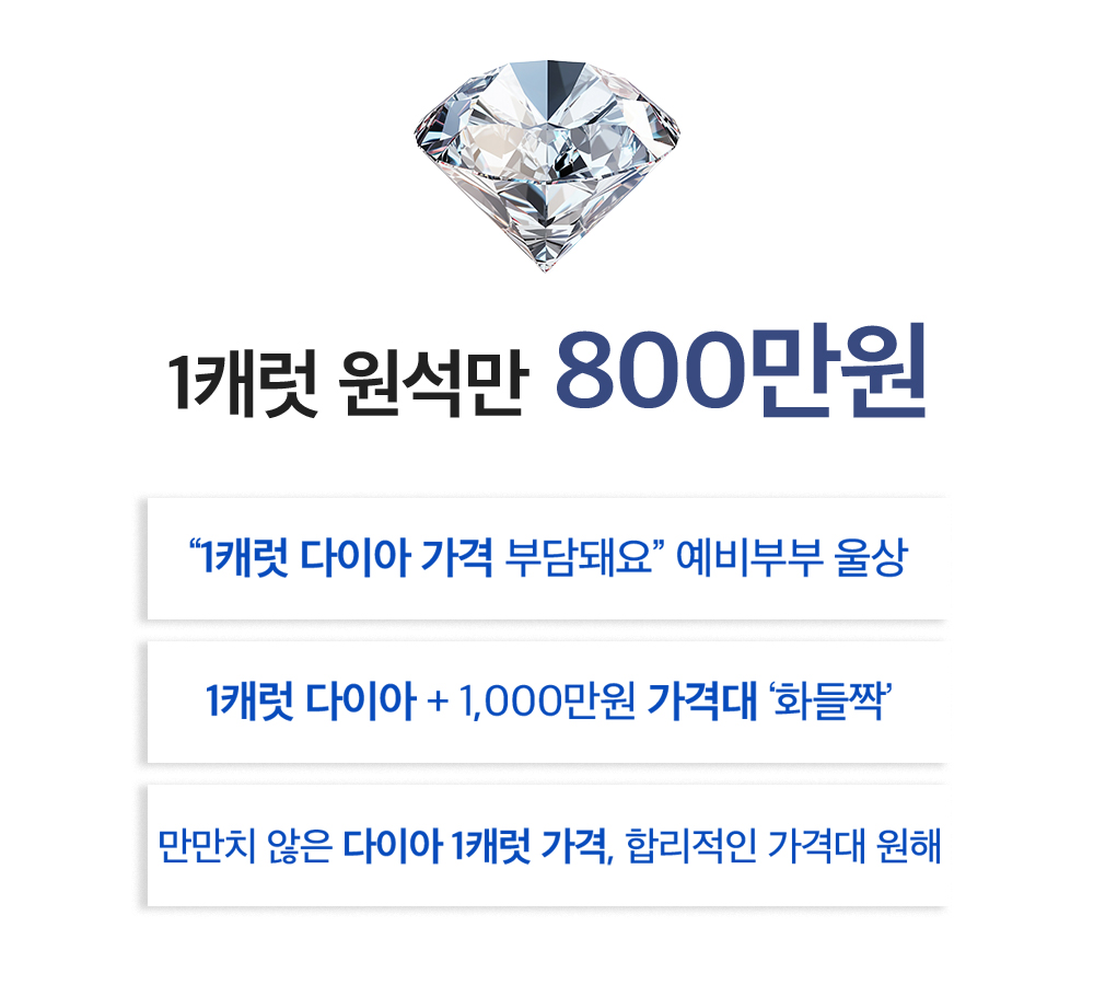 1캐럿 다이아몬드는 프로포즈의 정석으로 불리울 만큼 여성들에게 인기 있는 사이즈로, 한번쯤 소장하고 싶은 사이즈입니다.