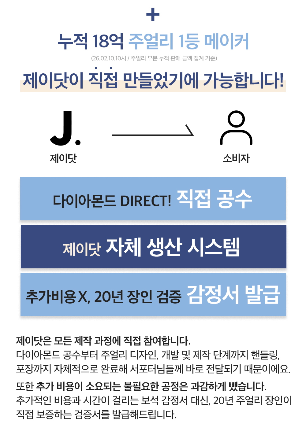 제이닷이 선보이는 다이아몬드는 천연과 100% 동일한 "랩 다이아몬드" 입니다.