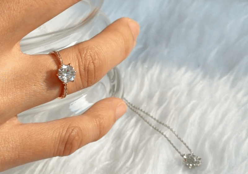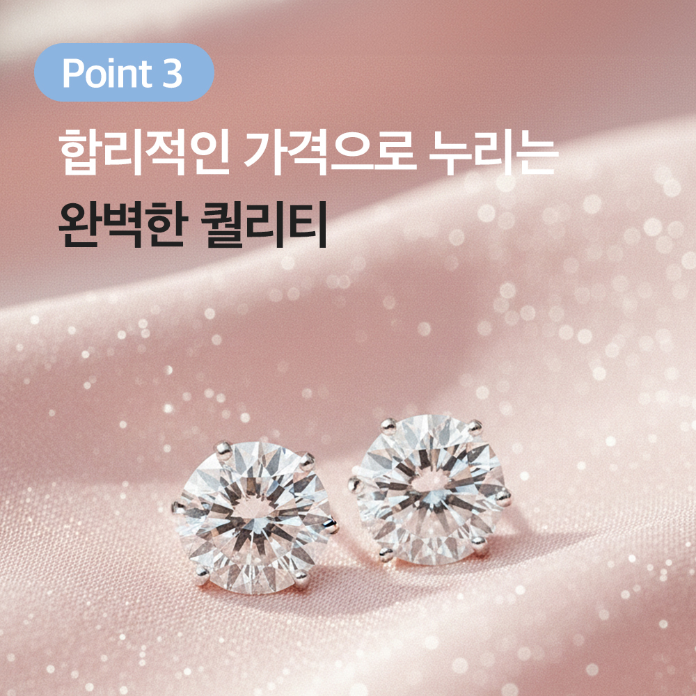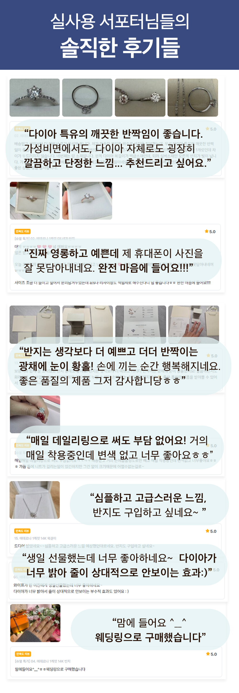 말하기 전까진 아마 모르셨을꺼에요! 천연 다이아몬드와 나란히 비춰봐도 아름다운 광채 보이시나요?
