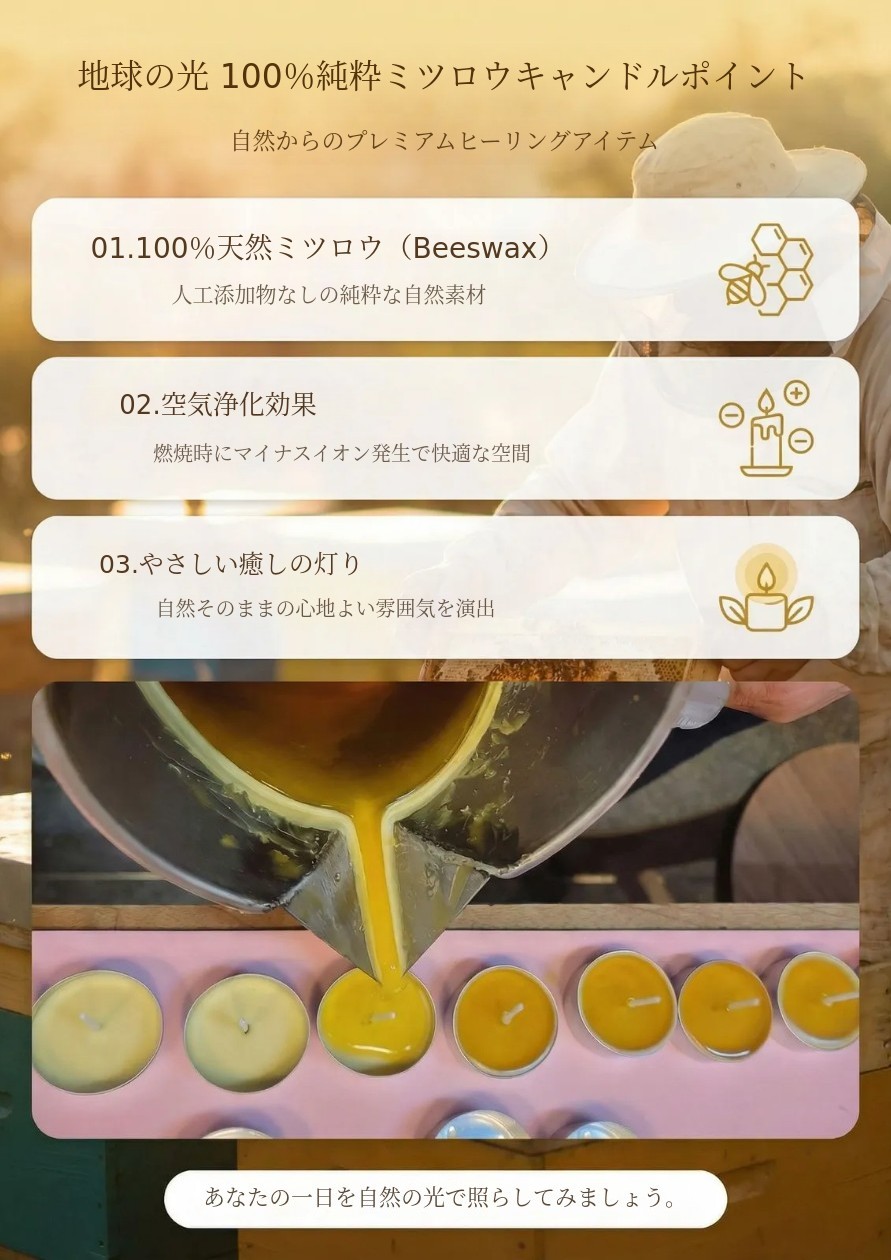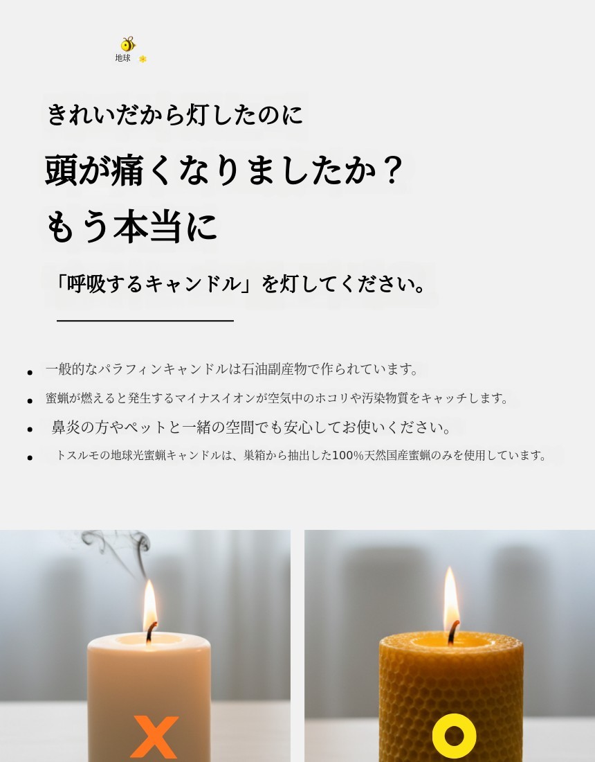 地球の光 蜜蝋キャンドルは国産蜜蝋100%、