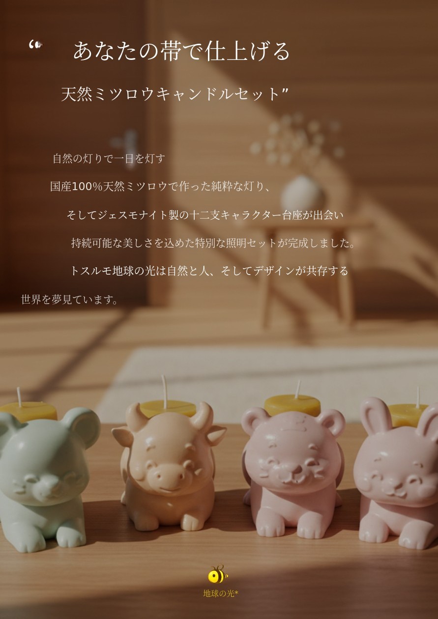 福を象徴する十二支とサステナブルな素材、そしてローカル蜜蝋キャンドルでした。