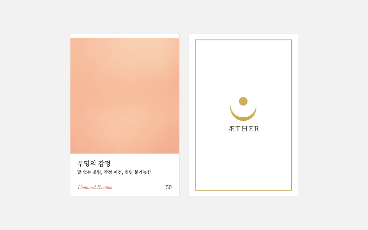 이번 프로젝트는 에테르 하우스 클럽의 <에테르 감정 카드>를 와디즈 서포터님들께 선보이기 위해 준비했어요. 감정과 마음을 느끼고 다가가고 싶으신 분들께 이 카드가 도움이 되시길 바랍니다.