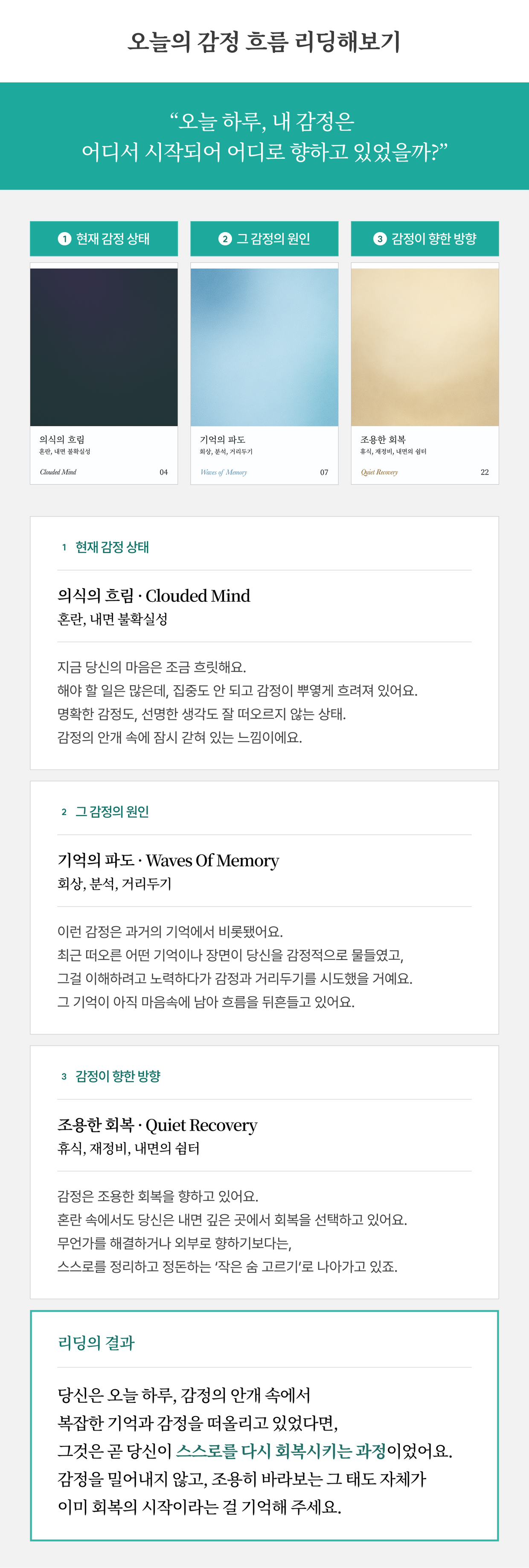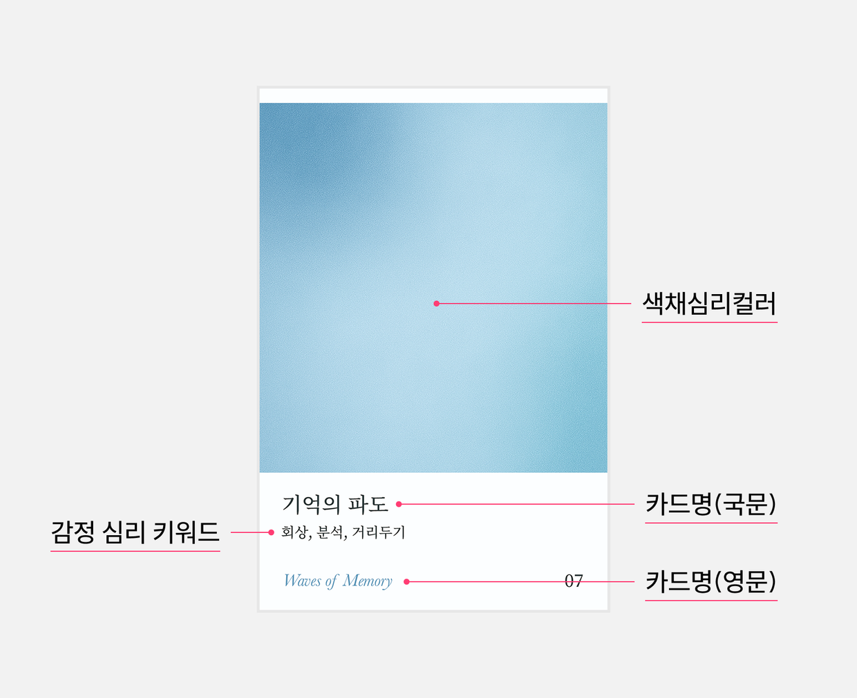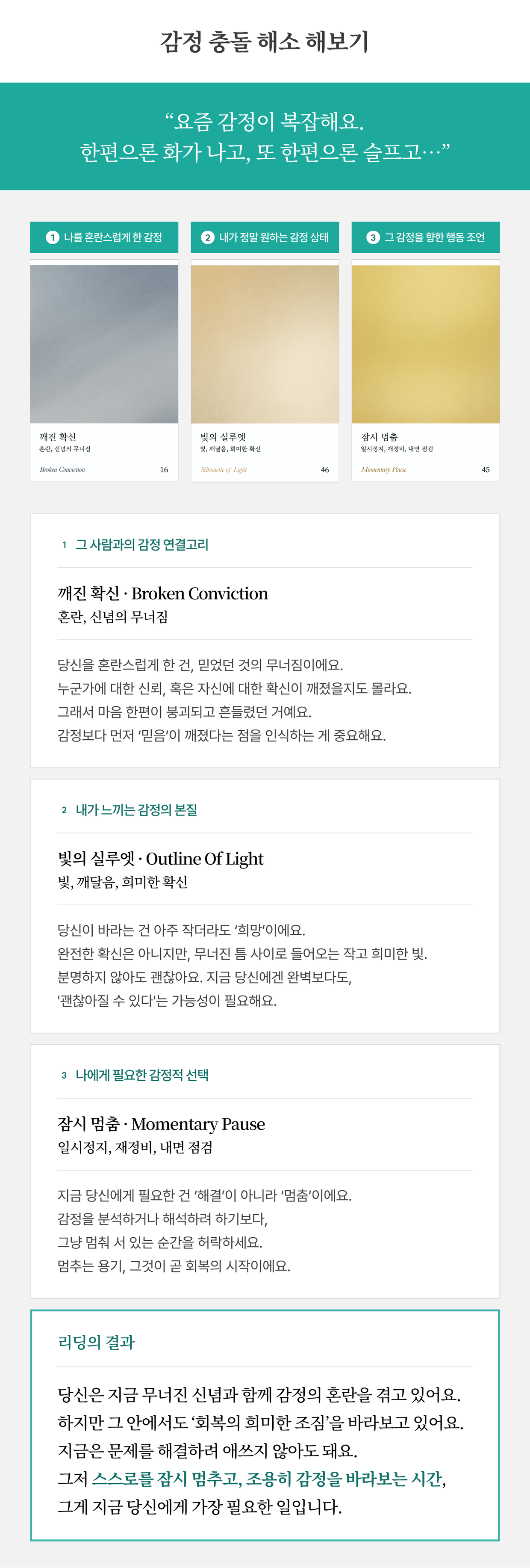 각 카드에는 감정의 미세한 지점을 포착한 키워드와,
