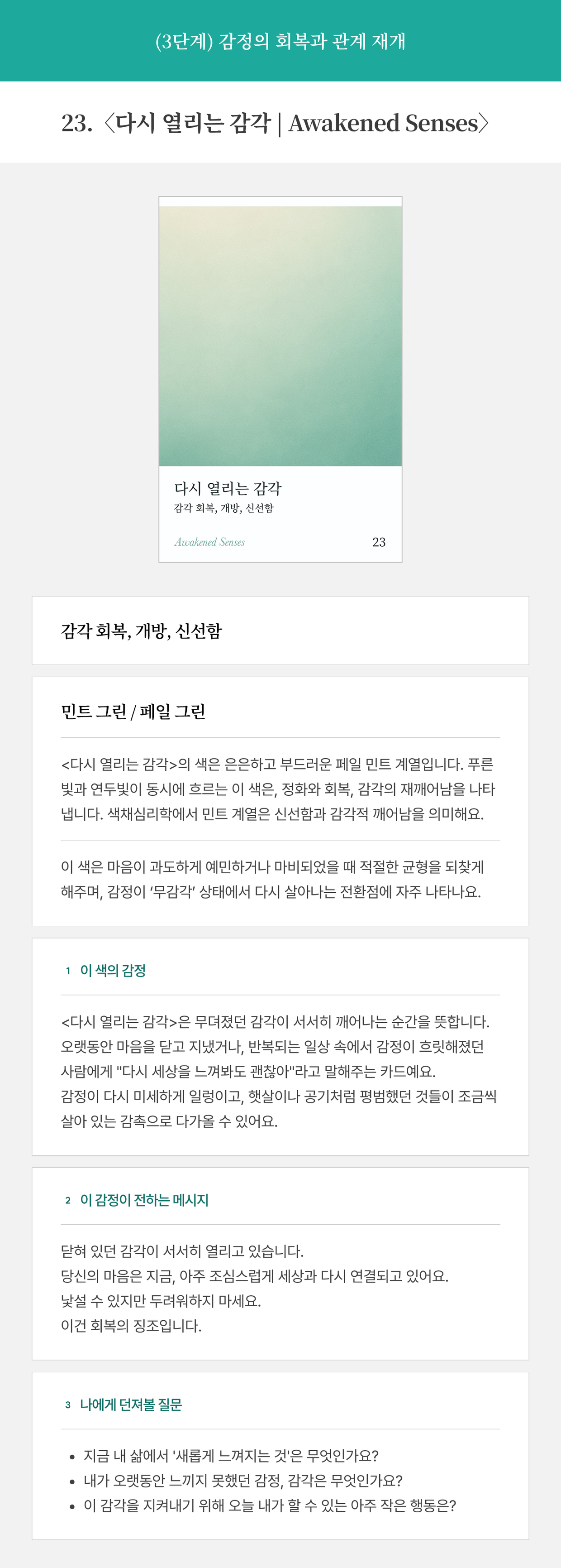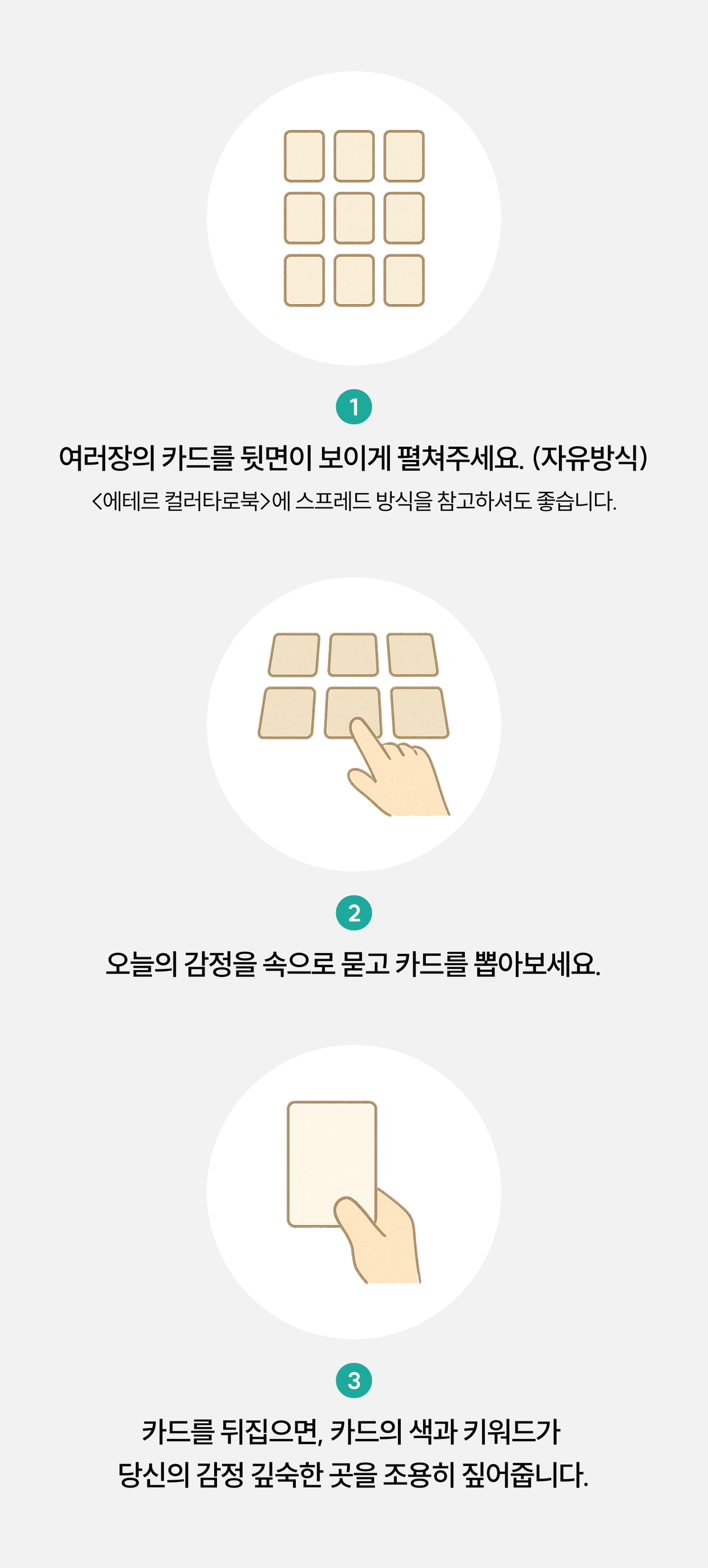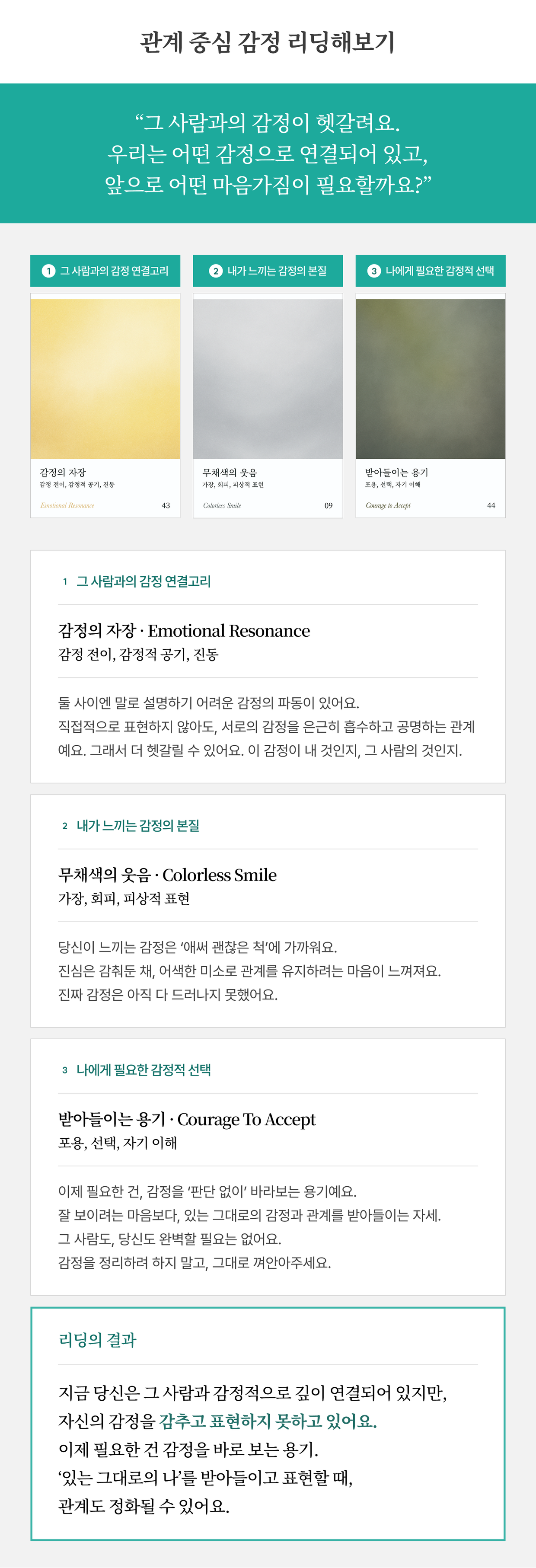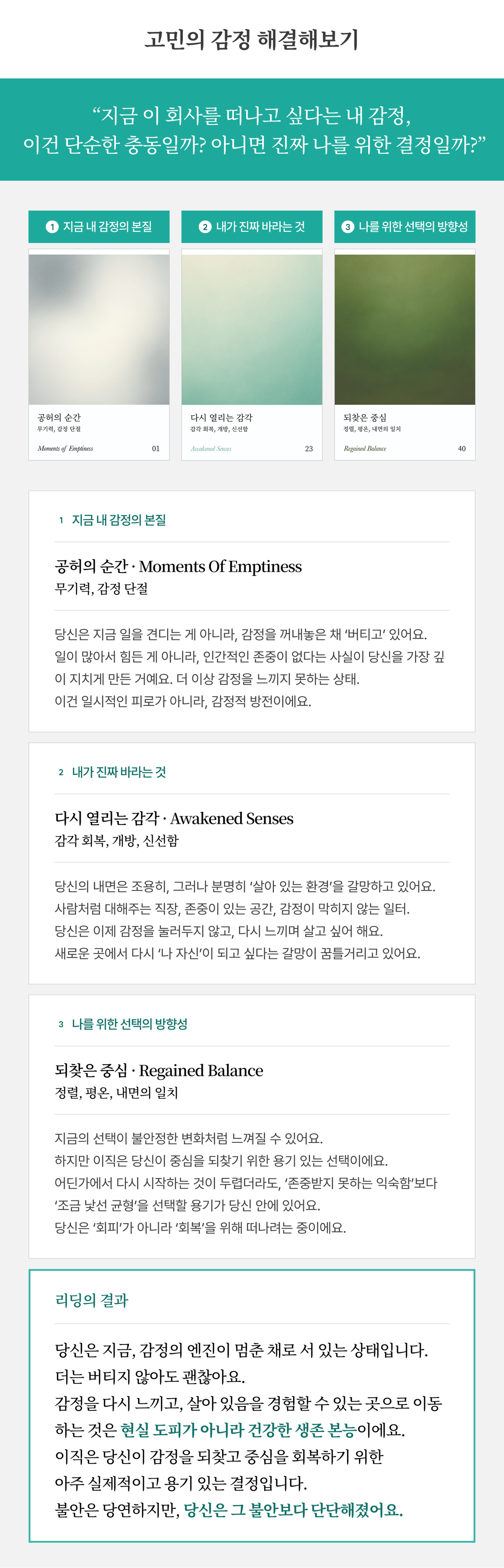 각 카드에는 감정의 미세한 지점을 포착한 키워드와,