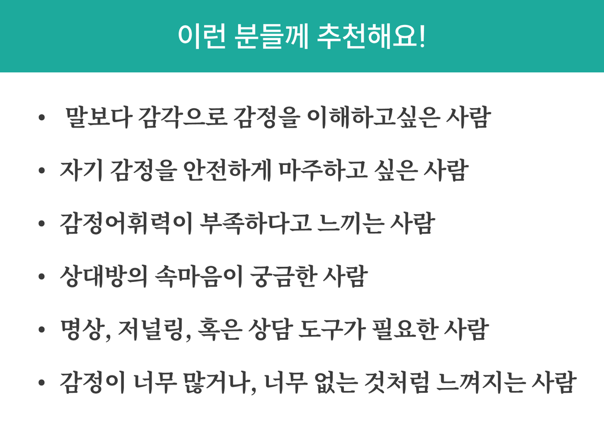 자신만의 감정 언어를 찾아가는 길잡이가 되어줄 거예요.