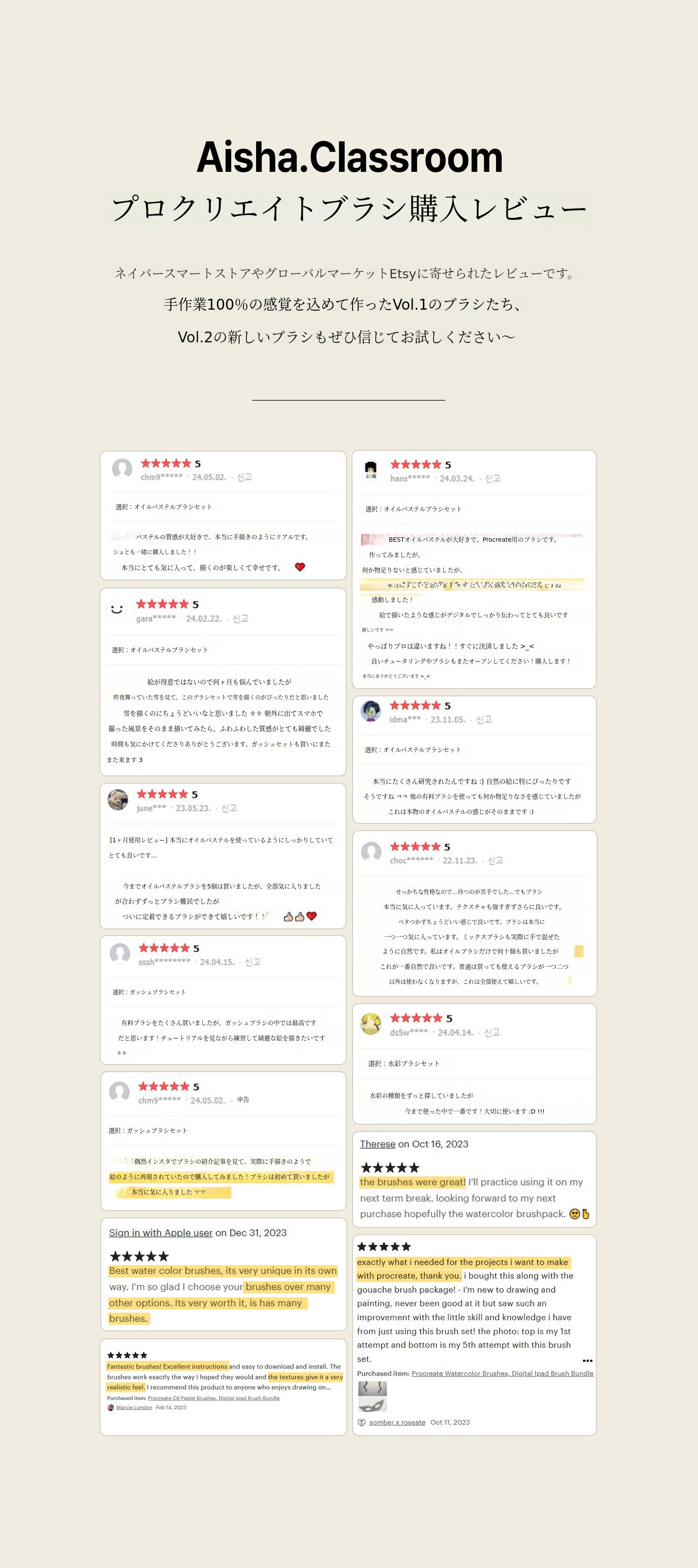 Aisha Brush Set Vol.1 & Vol.2のすべてのブラシの感性と質感を