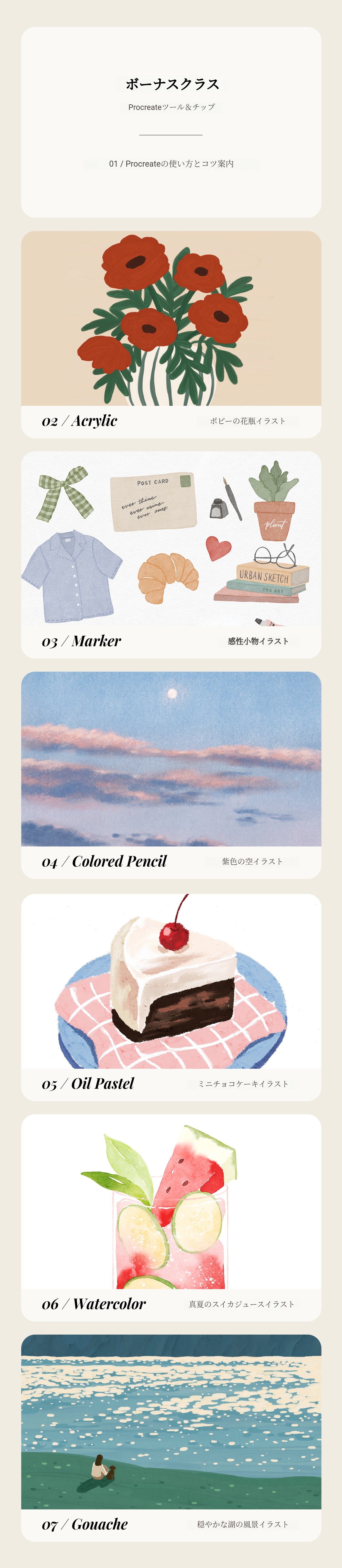このミニクラスを通じて私と一緒に一歩ずつ絵を完成させてみましょう。
