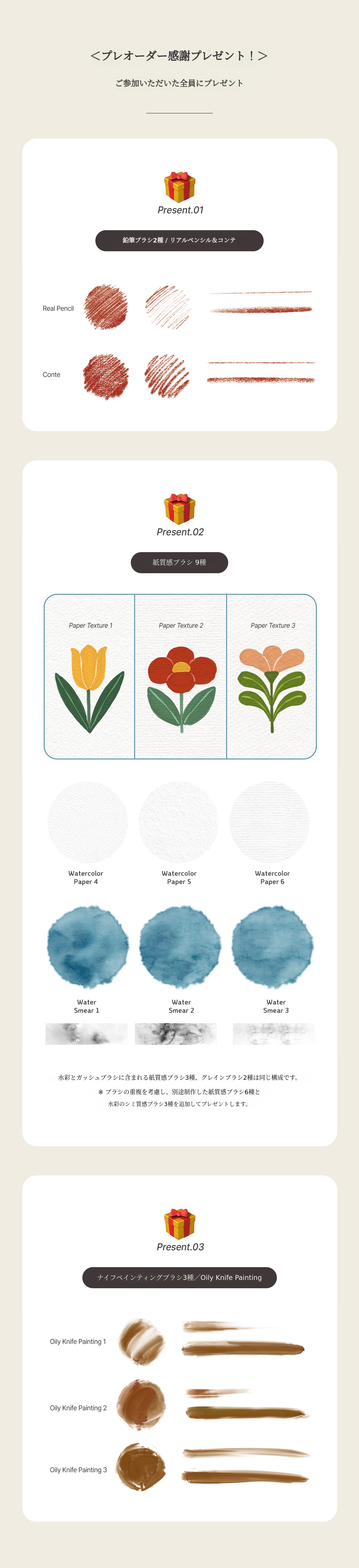 今回のプレオーダーではブラシチュートリアルを収録したミニクラス も特別にご用意しました!