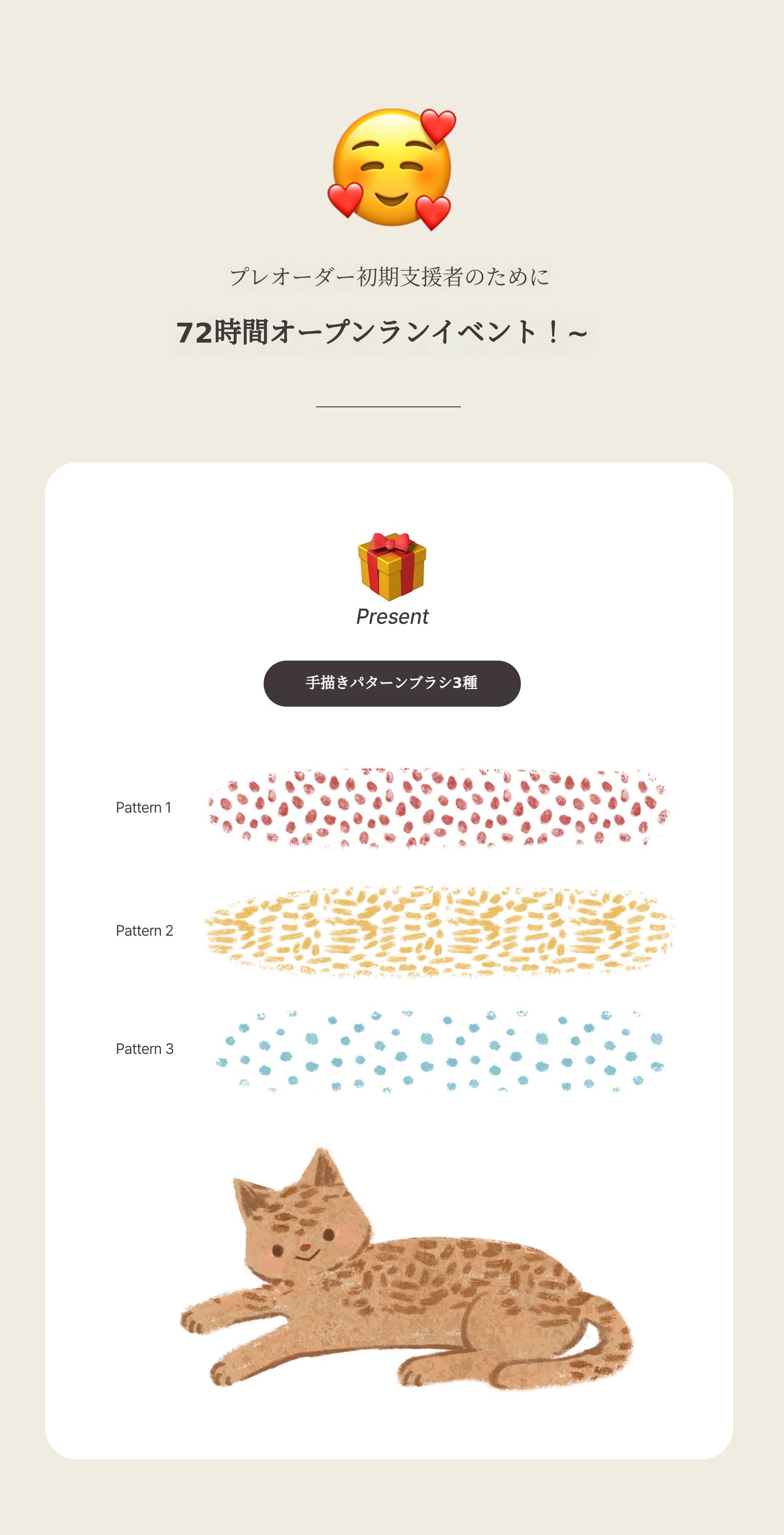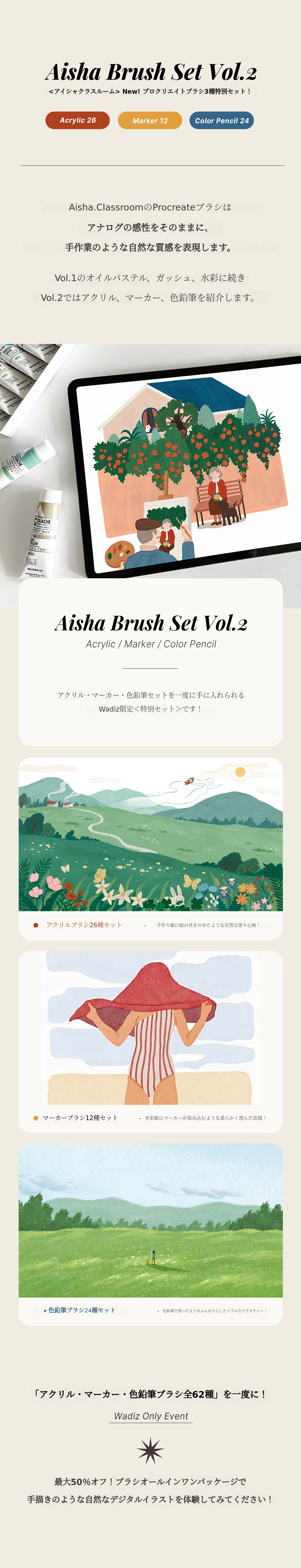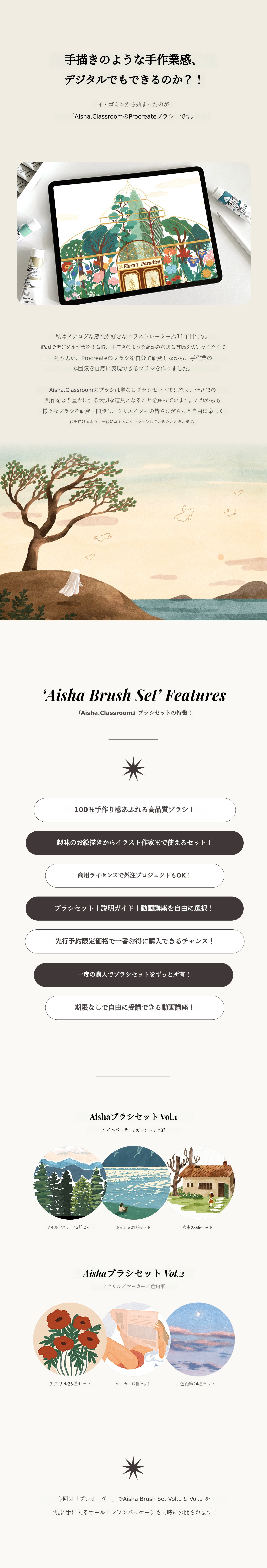 今回のWadizプレオーダーを通じて、より多くの方がProcreateで手描きのように自由で癒される作業を体験していただければと思います。完成度の高いブラシとともに追加構成としてミニクラス動画もご用意しましたので、感性あふれる作品をぜひ完成させてみてください。