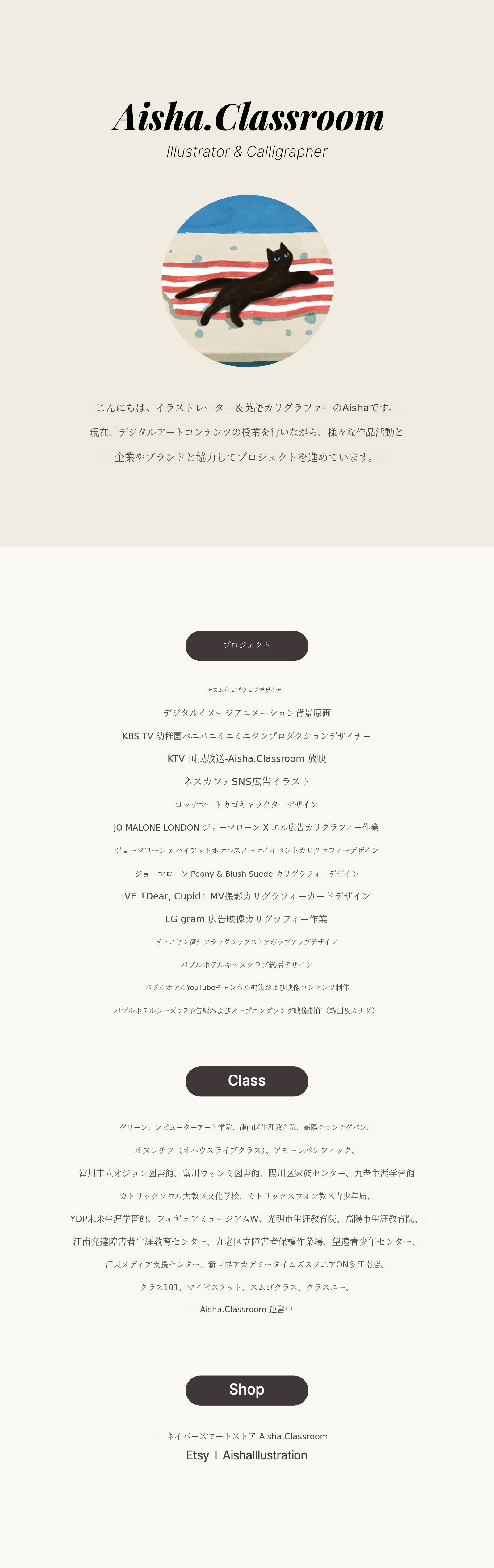 現在Aisha.Classroomを運営しており、さまざまなアートコンテンツの教育を行っています。