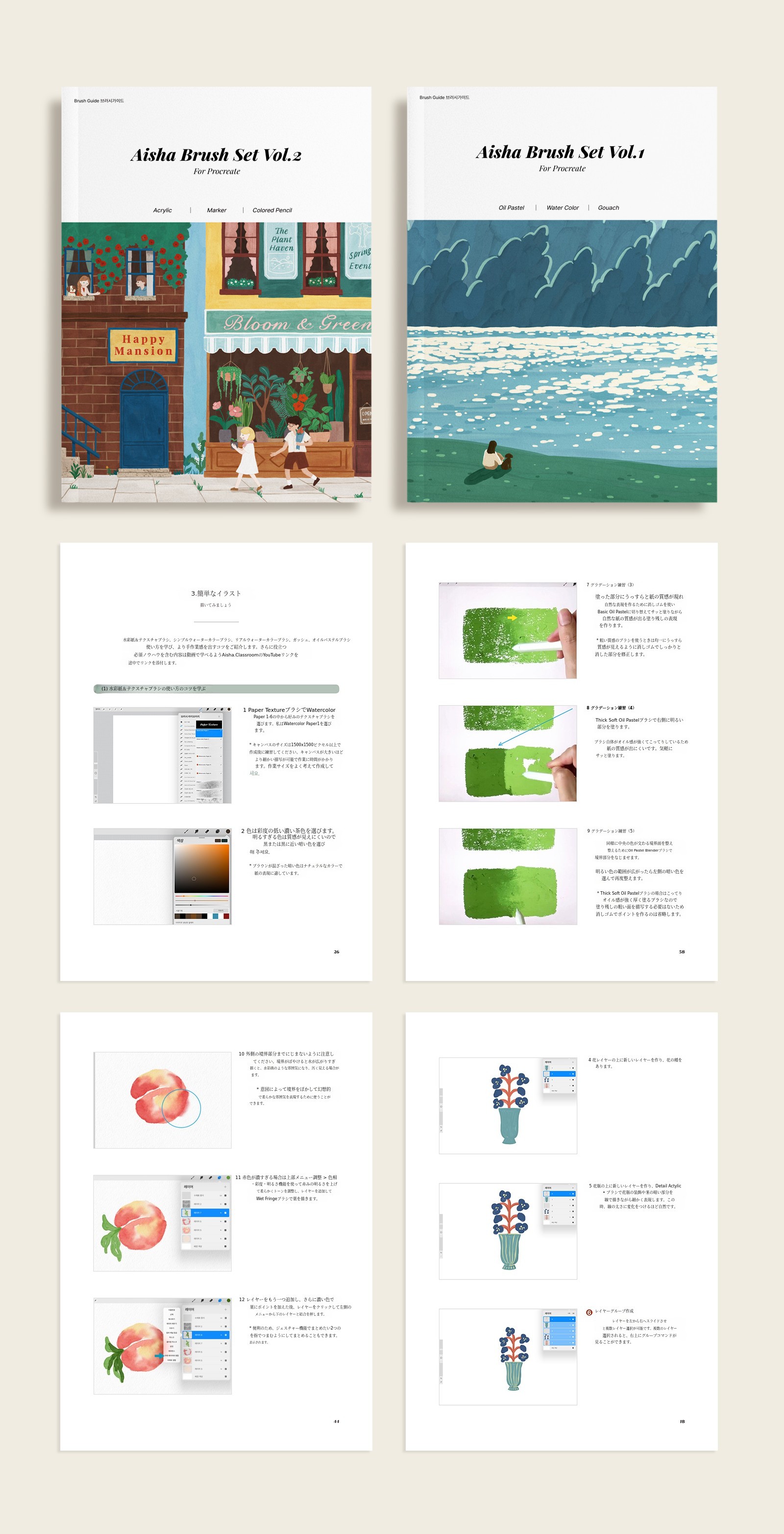 Aisha Brush SetのブラシはiPadでのみ使用可能なProcreate専用ブラシです。Procreate(プロクリエイト)アプリ5.3.15バージョンで制作されており5.3.15バージョン以下をご利用の方はアップデート後にご使用ください。